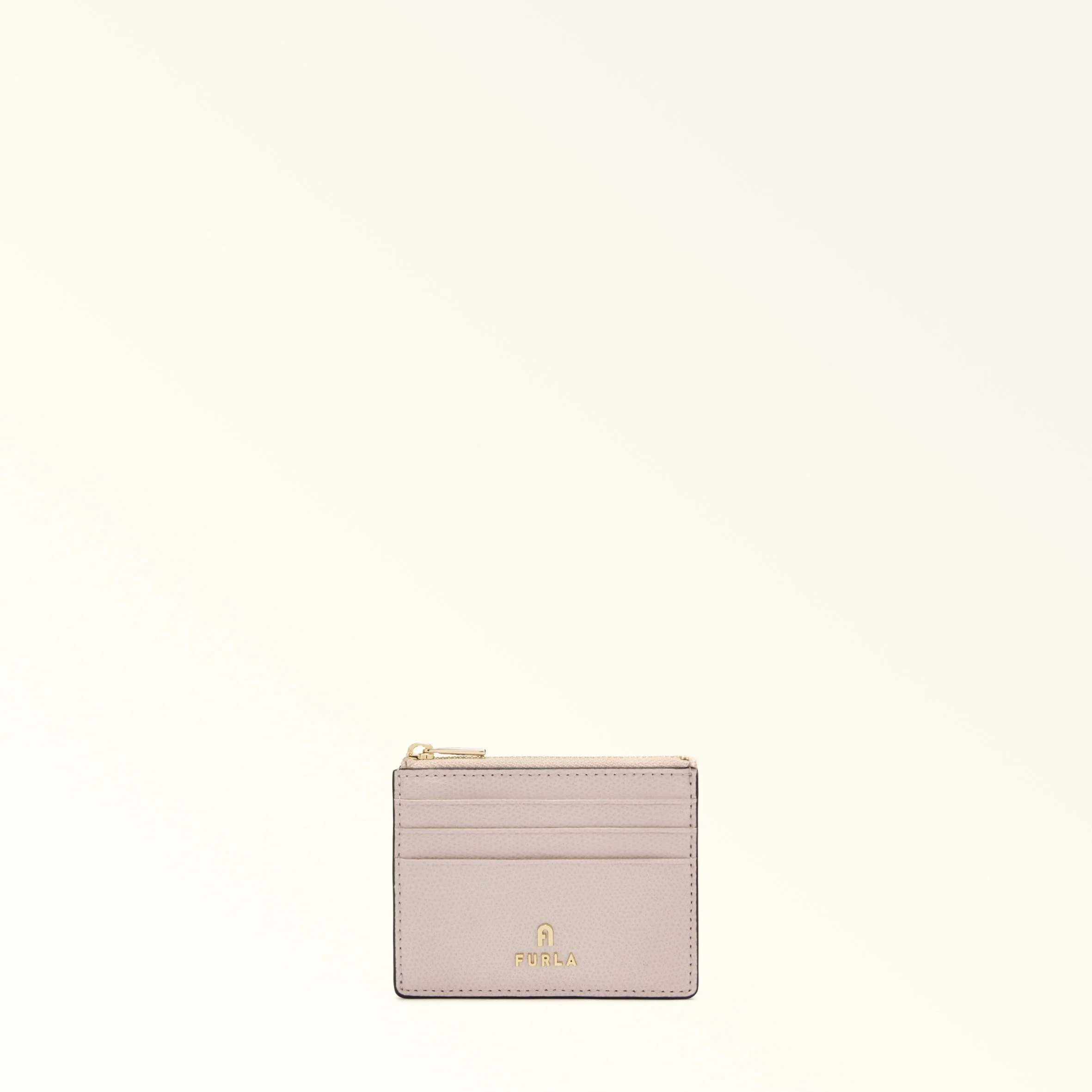 Keep your cards within easy reach with this stylish Furla Camelia card holder in printed textured leather. This compact design is ideal for keeping in any bag, and can also be used to hold cash, coins and receipts in the main compartment. - Three credit card slots on the front and back - Mini Furla and Arch logo punched on the front Details Exterior Details: 3 Cc Slots On Front Panel/3 Cc Slots On Back Panel Material: Textured Leather Closure: Zipper Hardware: Arch+Furla Lettering / Metal Zip Puller Product Code: WP00388ARE00010072814S Internal Composition: 100% Viscose External Composition: 100% Leather Plating: Gold Dimensions in INCH 4,13 x 3,35 x 0,59 (w x h x d)