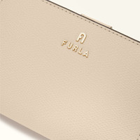 The minimalist design of this Furla Camelia compact wallet makes it the ideal choice to keep in every bag. The inside is designed especially to hold banknotes, cards and ID, and it is crafted from smooth leather, featuring rounded corners and elegant lines. - Ten inner credit card and slots - Inner compartment for banknotes - Four inner side pockets - Inner zipped coin pocket - Flap and press-stud closure - Mini Furla and Arch logo punched on the front Details Interior Details: 10 Cc Slots/4 Lateral Pockets/1 Large Compartment/Pocket With Zip For Coins Material: Textured Leather Closure: Snap Button Closure Hardware: Arch+Furla Lettering / Metal Zip Puller Product Code: WP00314ARE0001007B4L00 Internal Composition: 100% Viscose External Composition: 100% Leather Plating: Gold Dimensions in INCH 5,51 x 3,54 x 1,2 (w x h x d)