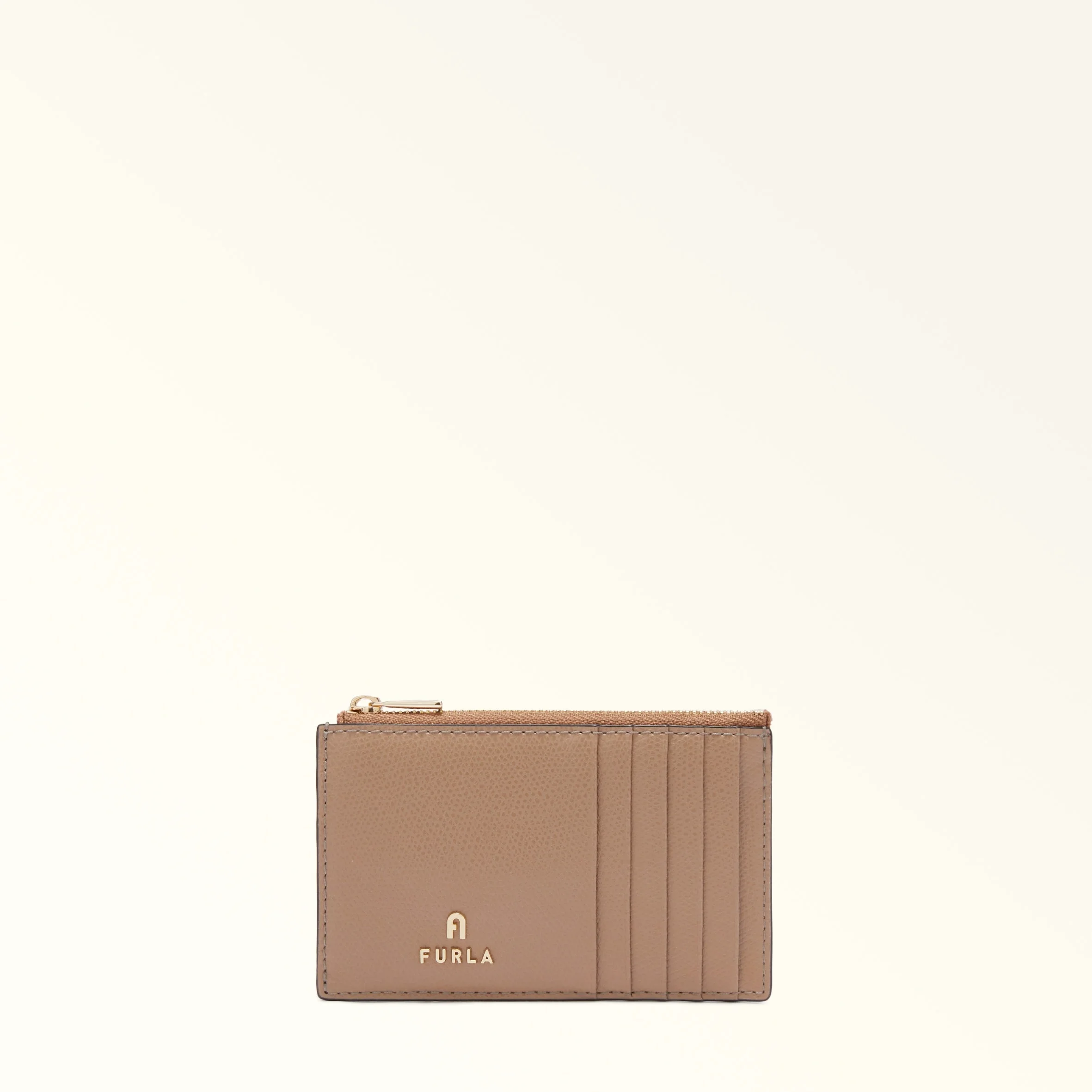 Crafted from luxurious printed leather, this Furla Camelia card holder is small and slim enough to slot into even the smallest bag. - Five credit card slots on the front and back - Zip closure - Mini Furla and Arch logo punched on the front Details Exterior Details: 5 Cc Slots On Front Panel/5 Cc Slots On The Back Panel/1 Central Zipped Pocket Material: Textured Leather Closure: Zipper Hardware: Arch+Furla Lettering / Metal Zip Puller Product Code: WP00310ARE00010071257S Internal Composition: 100% Viscose External Composition: 100% Leather Plating: Gold Dimensions in INCH 5,12 x 3,15 (w x h)