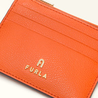 Keep your cards within easy reach with this stylish Furla Camelia card holder in printed textured leather. This compact design is ideal for keeping in any bag, and can also be used to hold cash, coins and receipts in the main compartment. - Three credit card slots on the front and back - Mini Furla and Arch logo punched on the front Details Exterior Details: 3 Cc Slots On Front Panel/3 Cc Slots On Back Panel Material: Textured Leather Closure: Zipper Hardware: Arch+Furla Lettering / Metal Zip Puller Product Code: WP00388ARE0001007KP000 Internal Composition: 100% Viscose External Composition: 100% Leather Plating: Gold Dimensions in INCH 4,13 x 3,35 x 0,59 (w x h x d)