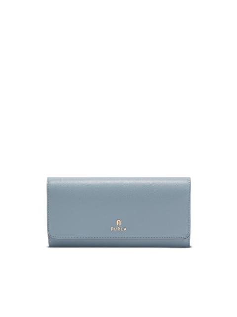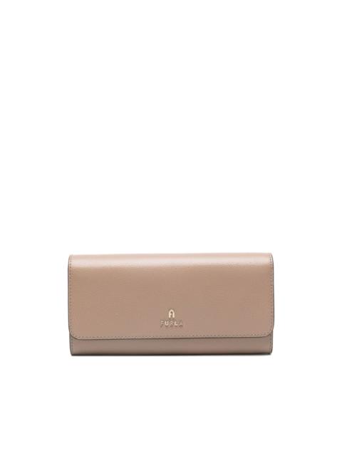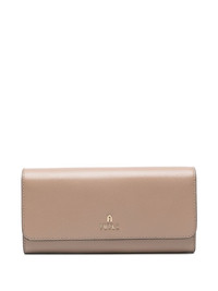 logo-plaque wallet Highlights - Greige - Leather grain - Snap button fastening - Internal compartments - Gold-tone logo plaque - Flap closure Imported Composition Outer: Leather 100% Lining: Viscose 100% SIZE & FIT Measurement DEPTH 0.8 in(2 cm) HEIGHT 3.56 in(9 cm) WIDTH 7.5 in(19 cm)