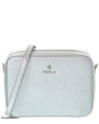 - About the brand: Classic elegance crafted with quality. - Camelia Mini Leather Camera Case in silver leather and palladium-tone hardware with Furla and arch logo punched on the front - Interior design details: four inner credit card and ID slots - Measures 5.85in wide x 4.29in high x 2.145in deep - Shoulder strap drops 21.45in - Zipper closure - Imported - Please note: All measurements were taken by hand and are approximate; slight variations may occur.