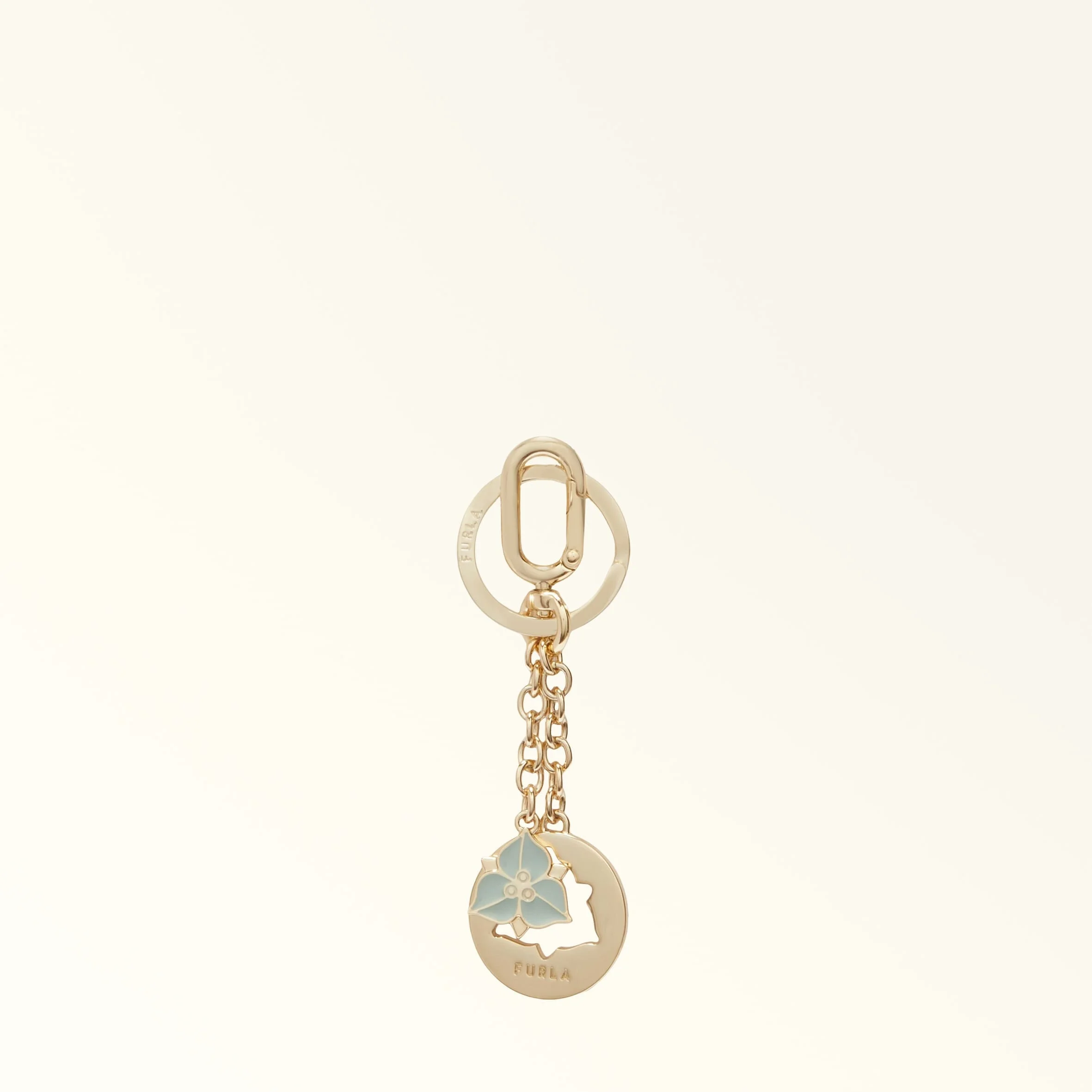 The enamelled charm in the shape of a bougainvillea flower sets this Furla Crystal keyring apart. Featuring an underlying metal disc with cut-out, this accessory will keep your keys organised or add a distinctive, colourful touch to bags and accessories. - Snap hook and ring with Furla logo engraving - Furla logo engraved on the back Details Exterior Details: Furla Logo Engraved On The Metal Material: Metal + Enamel Hardware: Snap Hook/Brisee Ring Product Code: WR00769MES0001007RUG00 External Composition: 70% Metal 10% Brass 10% Metal 10% Resin Plating: Gold Dimensions in INCH 1,18 x 4,13 (w x h)
