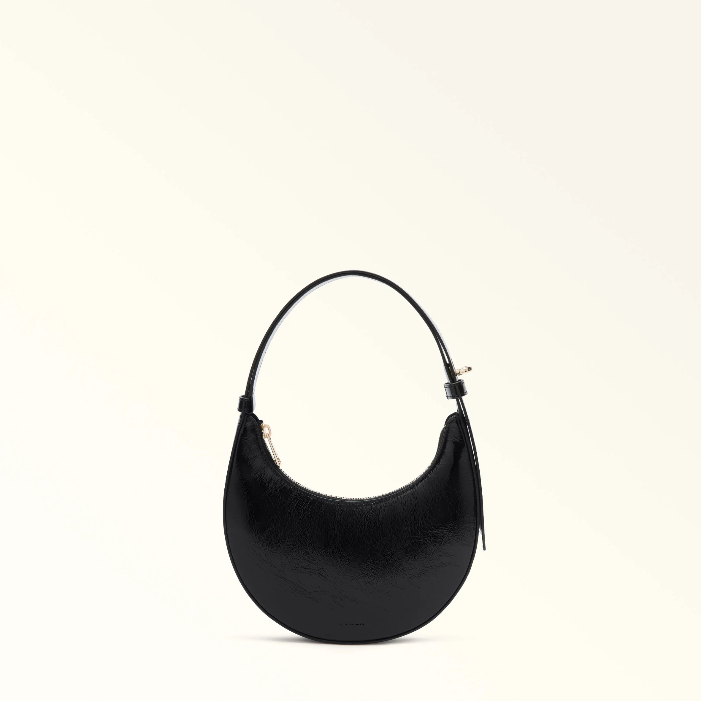 Mini but mighty, the Furla Delizia is just the right size for all your essentials. A concentration of elegance, the bag's sturdy half-moon structure is made of fine patent leather and its adjustable strap sits comfortably on your shoulder or in your hand. - Three inner credit card and ID slots - Adjustable shoulder strap with twist-lock system - Top zip closure - Furla logo print on the front Details Interior Details: 3 Cc Slots Exterior Details: Furla Punched Logo Material: Venice Patent Leather Product Code: WE00649BX41001007O6000 Plating: Gold Dimensions in INCH 8,27 x 7,48 x 1,18 (w x h x d)