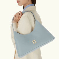 The epitome of sophistication and refinement, this Furla Diamante shoulder bag features clean, minimalist lines to take you from desk to dinner. Styled in soft smooth leather, this sleek piece is perfectly sized to hold all your essentials. - Zipped inner pocket - Open inner pocket - Zip closure - Arch logo punched on the front Details Interior Details: 1 Flat Open Pocket/ 1 Zipped Pocket Exterior Details: Furla Logo Material: Soft Calf Leather Strap information: Fixed Shoulder Strap Closure: Top Zipper Closure Hardware: Furla Arch Gasket Product Code: WB00782AX0733100755000 Internal Composition: 100% Polyester External Composition: 100% Leather Plating: Gold Dimensions in INCH 13,39 x 9,45 x 3,35 (w x h x d)