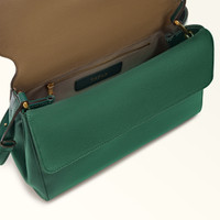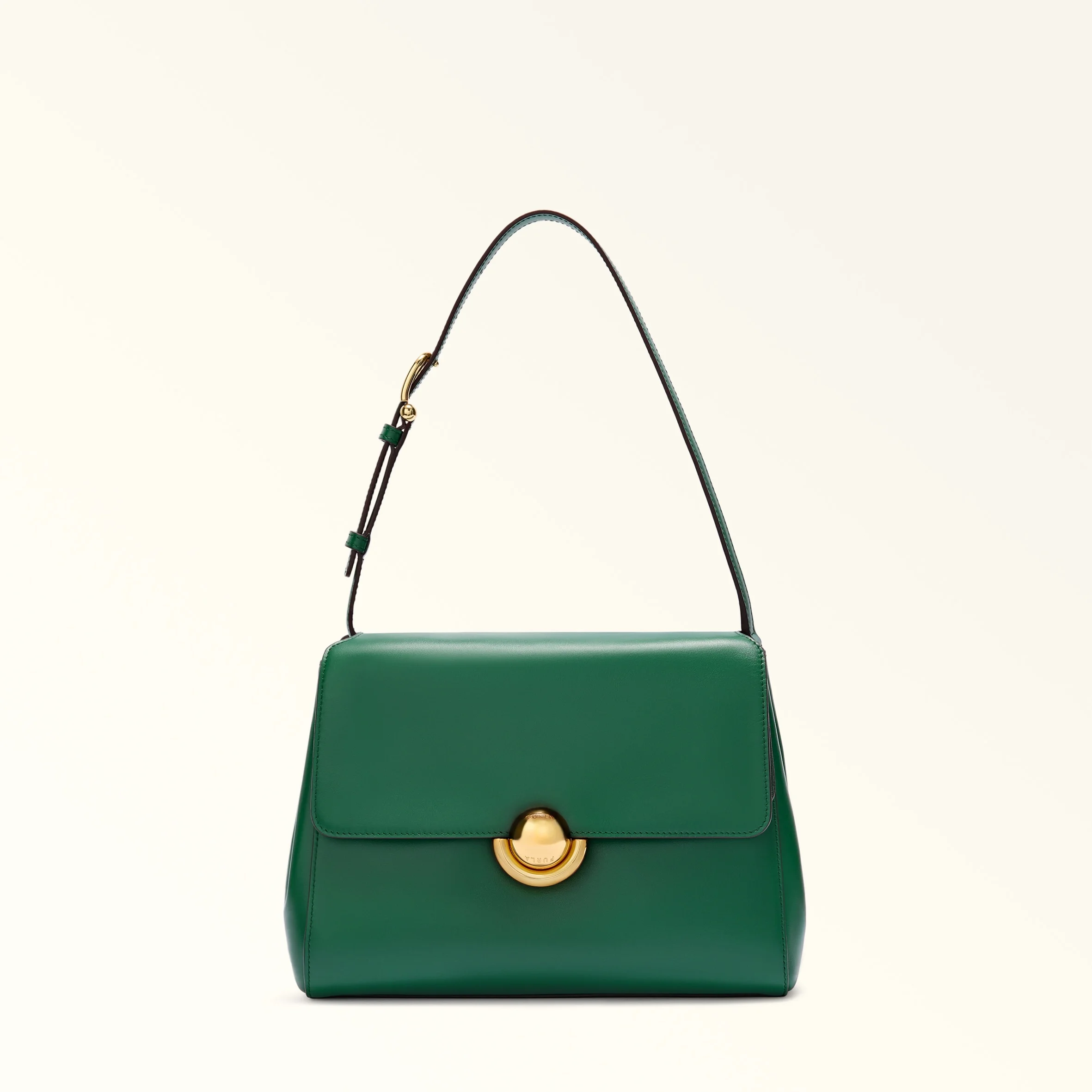 Soft and unstructured, the Furla Domus bag is crafted from luxurious calfskin leather. Its elegant flap closure is embellished with suede details and round Sfera hardware, elevating the design with a distinctive twist. Complete with a long adjustable handle, its compact silhouette sits on your shoulder in comfortable style. - Two inside slip pockets - Inside zip pocket - Open slip pocket on the front panel - Furla logo punched on the front Details Interior Details: 2 Flat Open Pocket/1 Zipped Pocket Material: Varrenne Calf Leather + Suede Product Code: WB01862BX418510024282S Plating: Polished Bronze Dimensions in INCH 10,83 x 8,07 x 4,13 (w x h x d)