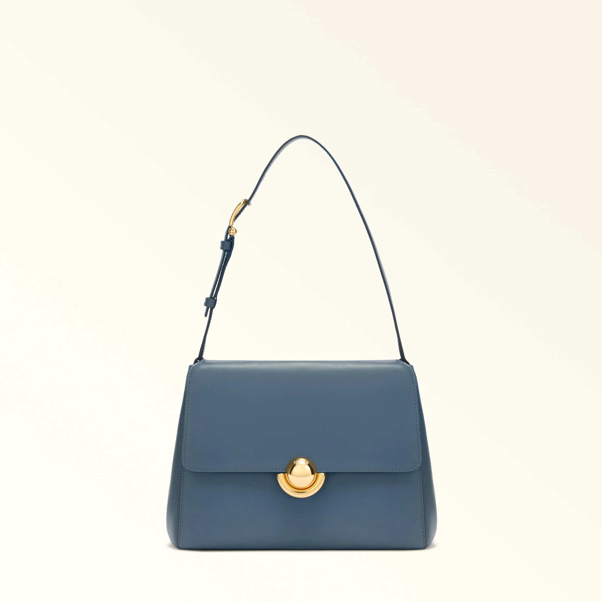 Soft and unstructured, the Furla Domus bag is crafted from luxurious calfskin leather. Its elegant flap closure is embellished with suede details and round Sfera hardware, elevating the design with a distinctive twist. Complete with a long adjustable handle, its compact silhouette sits on your shoulder in comfortable style. - Two inside slip pockets - Inside zip pocket - Open slip pocket on the front panel - Furla logo punched on the front Details Interior Details: 2 Flat Open Pocket/1 Zipped Pocket Material: Varrenne Calf Leather + Suede Product Code: WB01862BX41851002GU000 Plating: Polished Bronze Dimensions in INCH 10,83 x 8,07 x 4,13 (w x h x d)