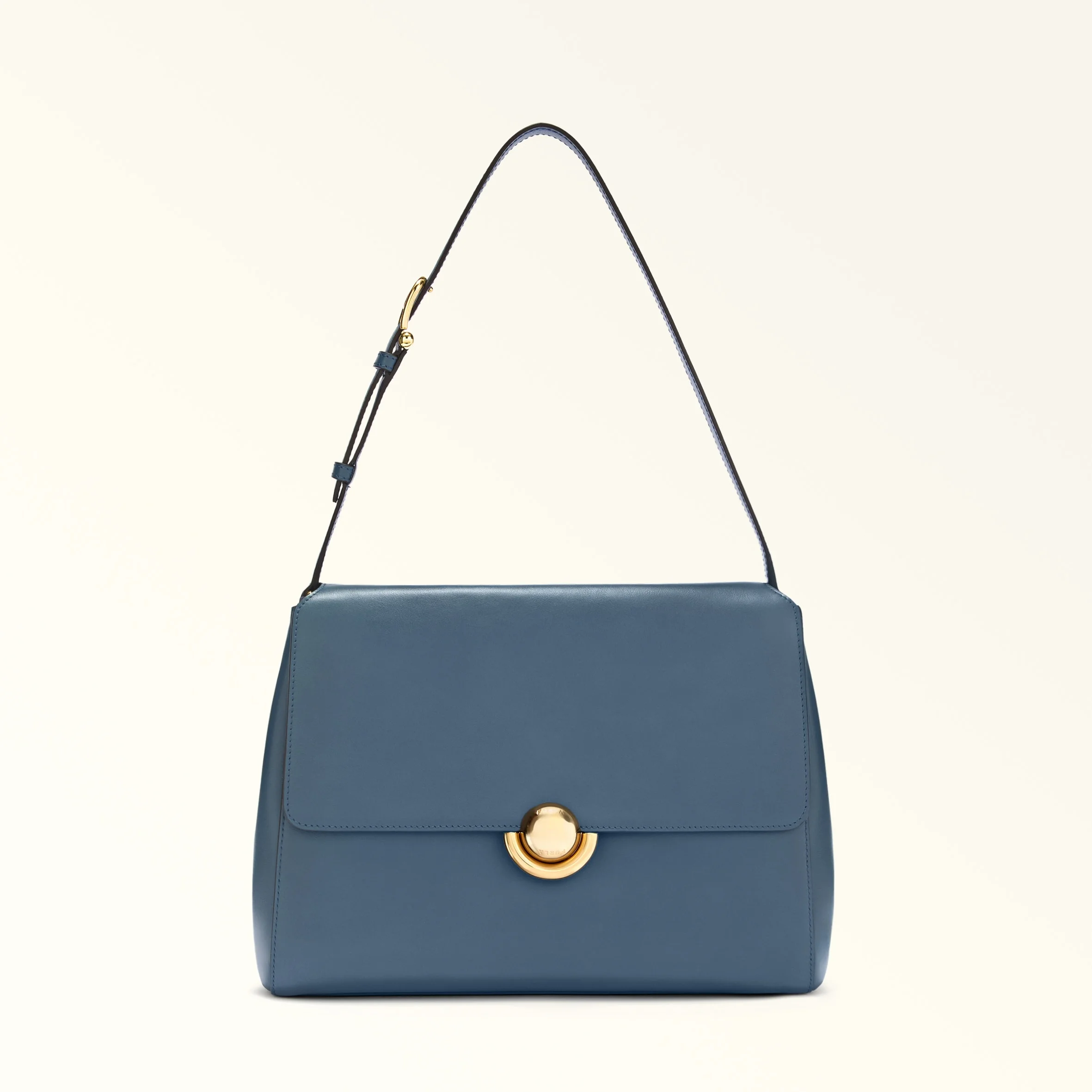 Soft and unstructured, the Furla Domus bag is crafted from luxurious calfskin leather. Its elegant flap closure is embellished with suede details and round Sfera hardware, elevating the design with a distinctive twist. Complete with a long adjustable handle, its spacious silhouette sits on your shoulder in comfortable style. - Two inside slip pockets - Inside zip pocket - Open slip pocket on the front panel - Furla logo punched on the front Details Interior Details: 2 Flat Open Pocket/1 Zipped Pocket Material: Varrenne Calf Leather + Suede Product Code: WB01804BX41851002GU000 Plating: Polished Bronze Dimensions in INCH 12,6 x 9,65 x 4,13 (w x h x d)