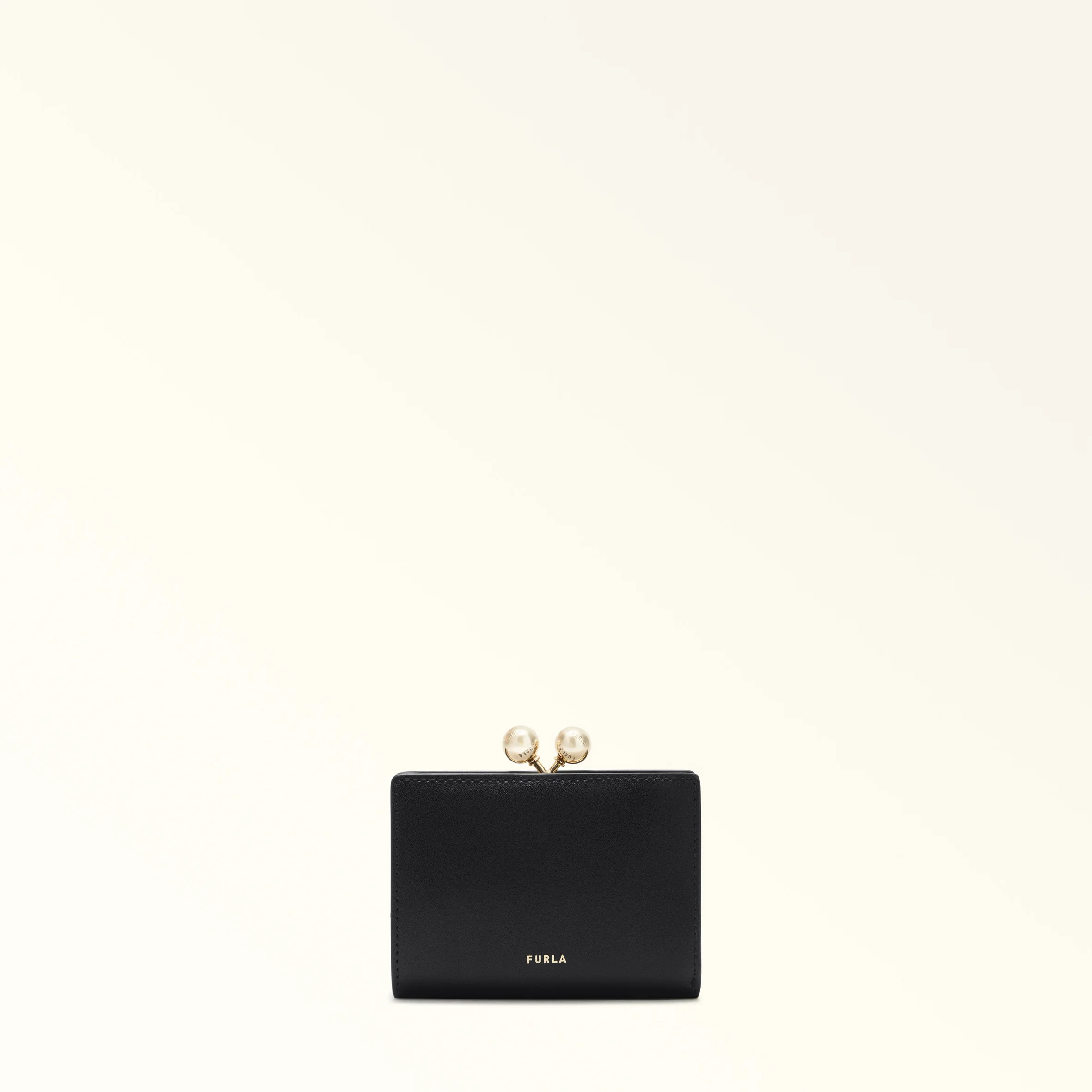 Crafted from fine printed leather with a light textured finish, the compact Furla Dots wallet is the perfect size for slipping into your bag. Its rectangular silhouette features a gusseted compartment for coins, which fastens at the top with an elegant Sfera clasp. A variety of other inside pockets keep your cards and cash flawlessly organised. - Ten inner credit card slots - Inner banknote compartment - Press-stud closure - Furla logo print on the front Details Exterior Details: Furla Punched Logo Material: Sidney Calf Leather Product Code: WP00541BX31041007O6000 Plating: Gold Dimensions in INCH 4,72 x 3,54 x 1,38 (w x h x d)
