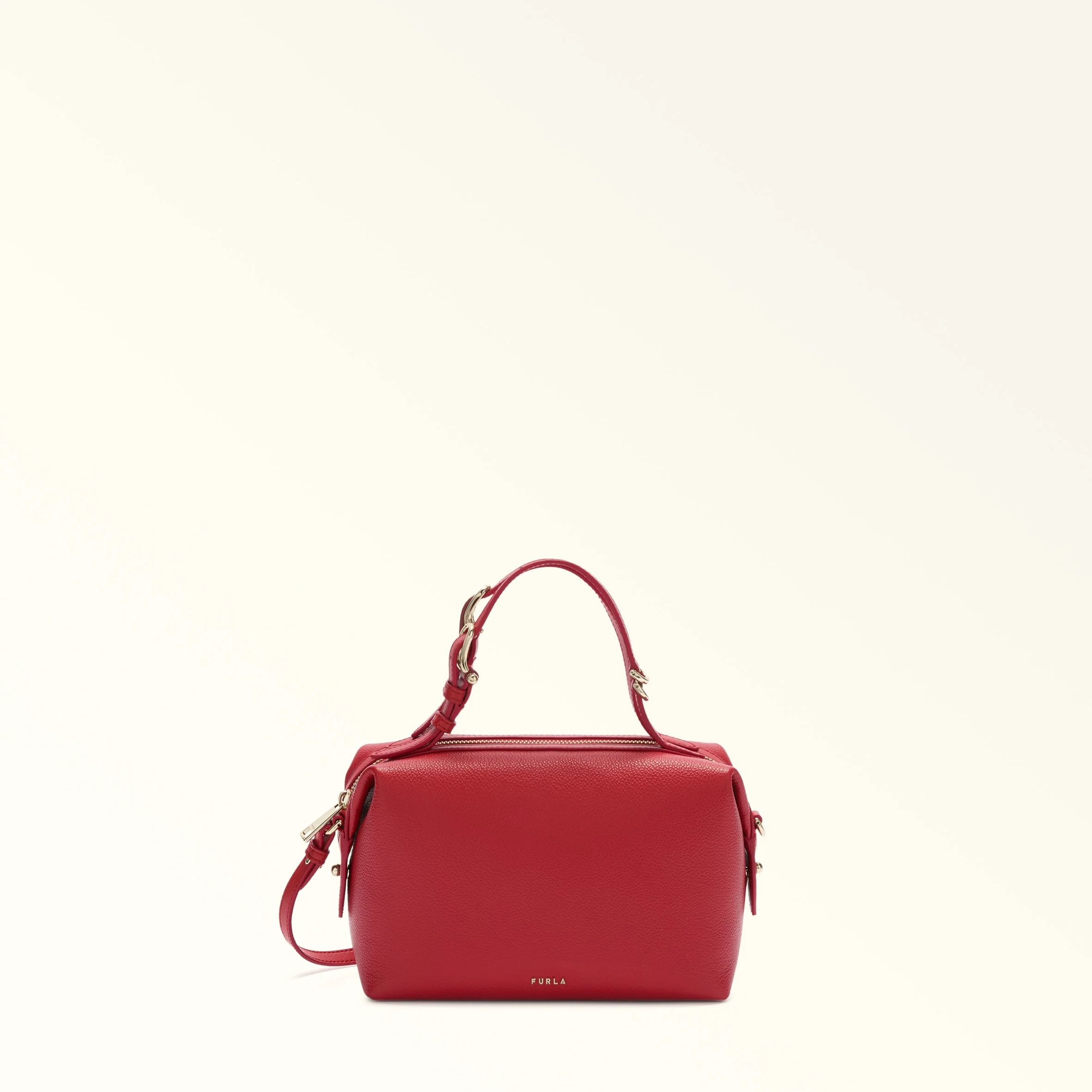 Soft and versatile, the Furla Double Boston bag's mini silhouette in precious grained calfskin is perfect for off-duty plans. Its matching shoulder strap is adjustable and detachable, allowing for a range of styling options. Its two handles are decorated with the brand's iconic Arch logo in metal and a D-ring for personalising your look with charms. - Open inside pocket - Double top zip closure - Furla logo punched on the back Details Interior Details: 1 Zipped Pocket Material: Night Calf Leather Strap information: Removable/adjustable leather strap Strap Length Max: 48.43 in Strap Length Min: 44.49 in Product Code: WE00870BX303610074484S Plating: Gold Dimensions in INCH 8,46 x 5,71 x 3,54 (w x h x d)