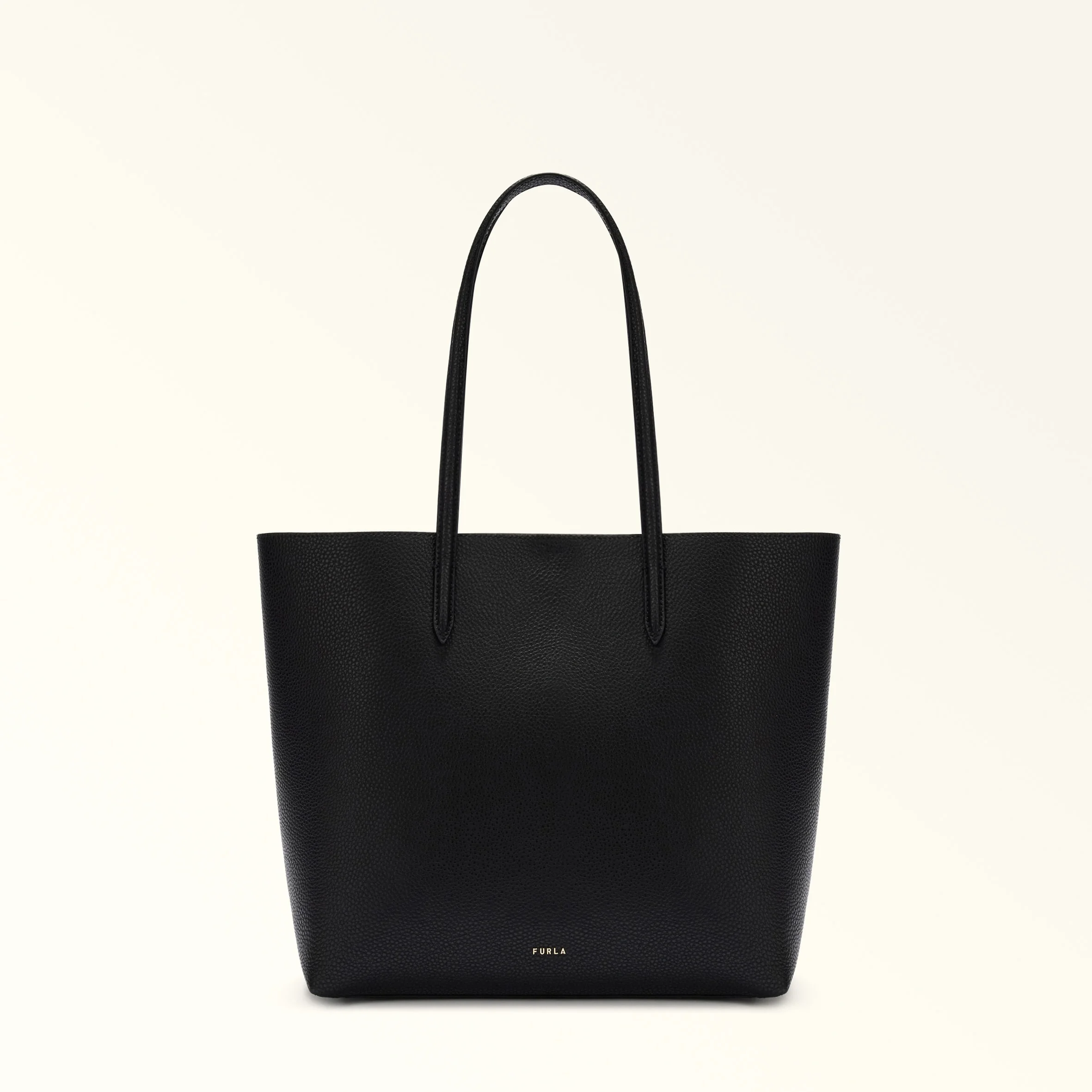 A compact tote bag made of double-sided calfskin leather, the minimalist and modern Furla Ella is complete with two long handles for styling it either in the hand or on the shoulder. Its matching lace fastening features shiny cufflink hardware. - Open inside pocket - D-ring for charms and keys Details Interior Details: 1 Flat Open Pocket Material: Double Pebble Calf Leather Product Code: WB01838BX432910073924S Plating: Gold Dimensions in INCH 12,2 x 11,81 x 5,51 (w x h x d)