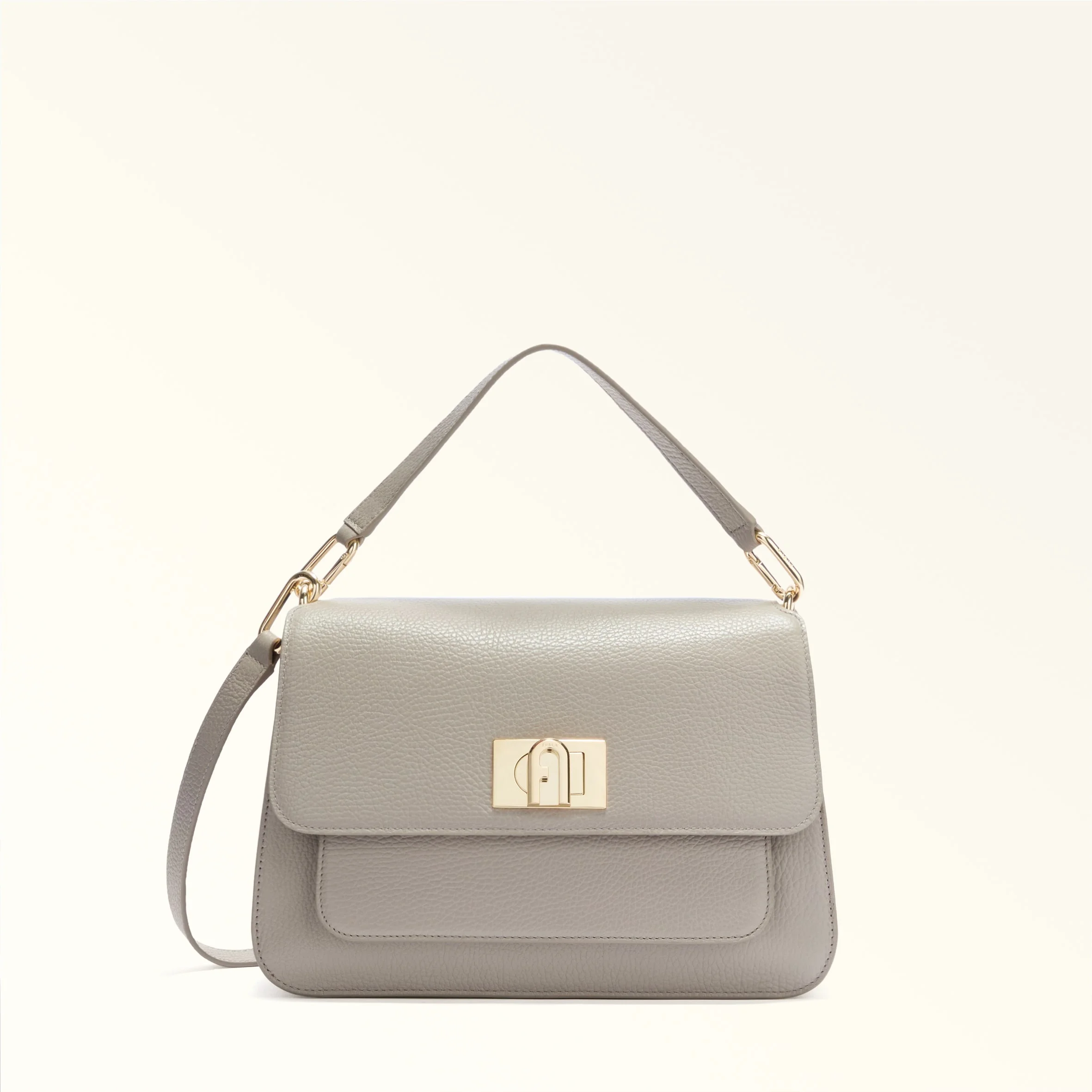 This compact take on the modern and minimalist Furla Ella handbag is crafted from fine leather with a subtle grained finish. It can be worn in an array of ways using its detachable matching strap, making it the perfect accessory for completing any daytime or evening look. - Open inside pocket - Inside zip pocket - Open pocket on the front and back - Twist closure with Arch 1927 logo - Printed Furla logo Details Material: Grained Calf Leather Product Code: WB01968HSF0001007VAN00 Plating: Gold Dimensions in INCH 11,02 x 7,48 x 4,33 (w x h x d)