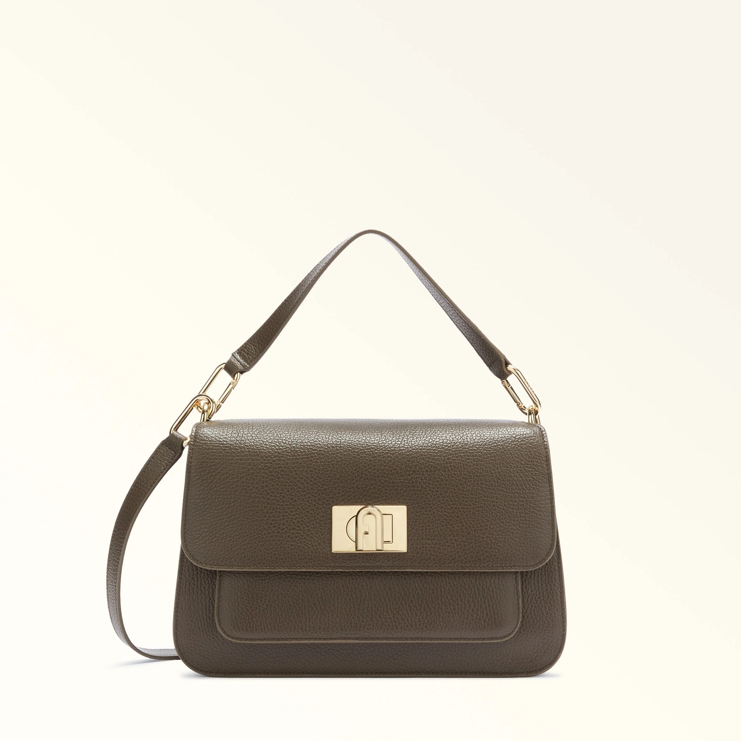 This compact take on the modern and minimalist Furla Ella handbag is crafted from fine leather with a subtle grained finish. It can be worn in an array of ways using its detachable matching strap, making it the perfect accessory for completing any daytime or evening look. - Open inside pocket - Inside zip pocket - Open pocket on the front and back - Twist closure with Arch 1927 logo - Printed Furla logo Details Material: Grained Calf Leather Product Code: WB01968HSF00010072566S Plating: Gold Dimensions in INCH 11,02 x 7,48 x 4,33 (w x h x d)