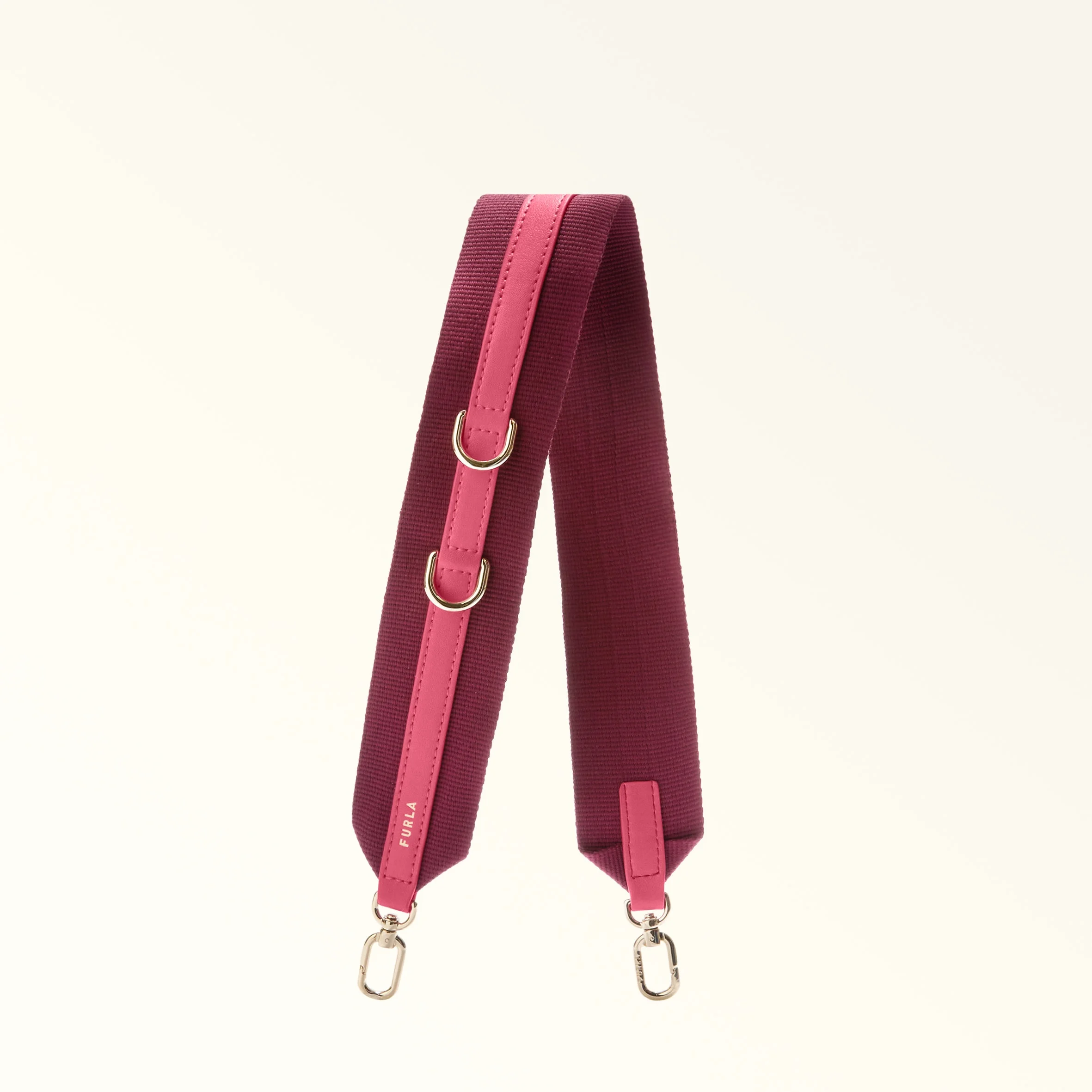 The Furla Fiona shoulder strap resembles an elegant bow. Crafted from webbing with calfskin leather details, it makes the perfect characterful addition to your bags and outfits. - Snap hooks on either end - Engraved Furla logo Details Exterior Details: Furla Punched Logo Material: Ribbon Fabric + Sidney Calf Leather Product Code: WK00468BX318810074492S Plating: Gold Weight: 0.07 kg