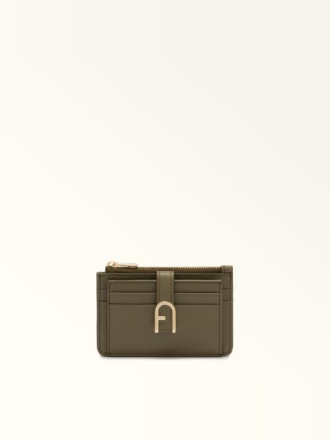 Crafted in fine leather, this Furla Flow card case features a flat and functional shape that is slim enough to be slipped into any bag. - Two credit card slots with flap and press-stud closure with Arch logo - Two credit card and ID slots on the front - One credit card and ID slot on the back - Ideal for holding badges and passes - Zip closure Details Exterior Details: 2 Cc Slots On The Front 1 Cc Slot On The Back Foldable Badge Holder W 2 Cc Slots With Snap Closure Material: Claris Lux Calf Leather Closure: Zipper Hardware: Furla Arch Gasket Snap Button Metal Zip Puller Product Code: WP00403BX204510072810S Internal Composition: 100% Viscose External Composition: 100% Leather Plating: Gold Dimensions in INCH 4,72 x 2,95 (w x h)