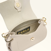 Paired with the decorative iconic Arch buckle on the front, the sleek curves of this Furla Flow mini bag give it the contemporary touch that makes it stand out and capture attention. Just the right size to hold all your small essentials, this sophisticated piece is styled in soft nappa leather and can be carried by hand, worn crossbody or on the shoulder, any time, any place. - Open inside pocket - Short leather top handle - Adjustable and removable long leather strap - Flap and magnetic button closure - Punched Furla logo Details Interior Details: 1 Flat Open Pocket Exterior Details: Furla Logo/Single Handle Material: Claris Lux Calf Leather Strap information: Removable/adjustable leather strap Strap Length Max: 43.7 in Strap Length Min: 38.58 in Closure: Magnet Closure Hardware: Furla Arch Gasket Product Code: WB01032BX204510074556S Internal Composition: 50% Nylon 50% Polyurethane External Composition: 100% Leather Plating: Gold Weight: 0.46 kg Dimensions in INCH 8,46 x 5,91 x 3,15 (w x h x d)