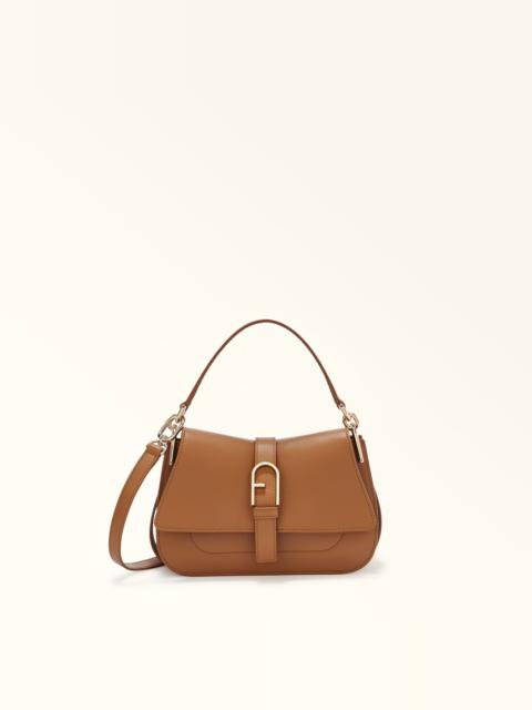 Paired with the decorative iconic Arch buckle on the front, the sleek curves of this Furla Flow mini bag give it the contemporary touch that makes it stand out and capture attention. Just the right size to hold all your small essentials, this sophisticated piece is styled in soft nappa leather and can be carried by hand, worn crossbody or on the shoulder, any time, any place. - Open inside pocket - Short leather top handle - Adjustable and removable long leather strap - Flap and magnetic button closure - Punched Furla logo Details Interior Details: 1 Flat Open Pocket Exterior Details: Furla Logo/Single Handle Material: Claris Lux Calf Leather Strap information: Removable/adjustable leather strap Strap Length Max: 43.7 in Strap Length Min: 38.58 in Closure: Magnet Closure Hardware: Furla Arch Gasket Product Code: WB01032BX204510074284S Internal Composition: 50% Nylon 50% Polyurethane External Composition: 100% Leather Plating: Gold Dimensions in INCH 8,46 x 5,91 x 3,15 (w x h x d)