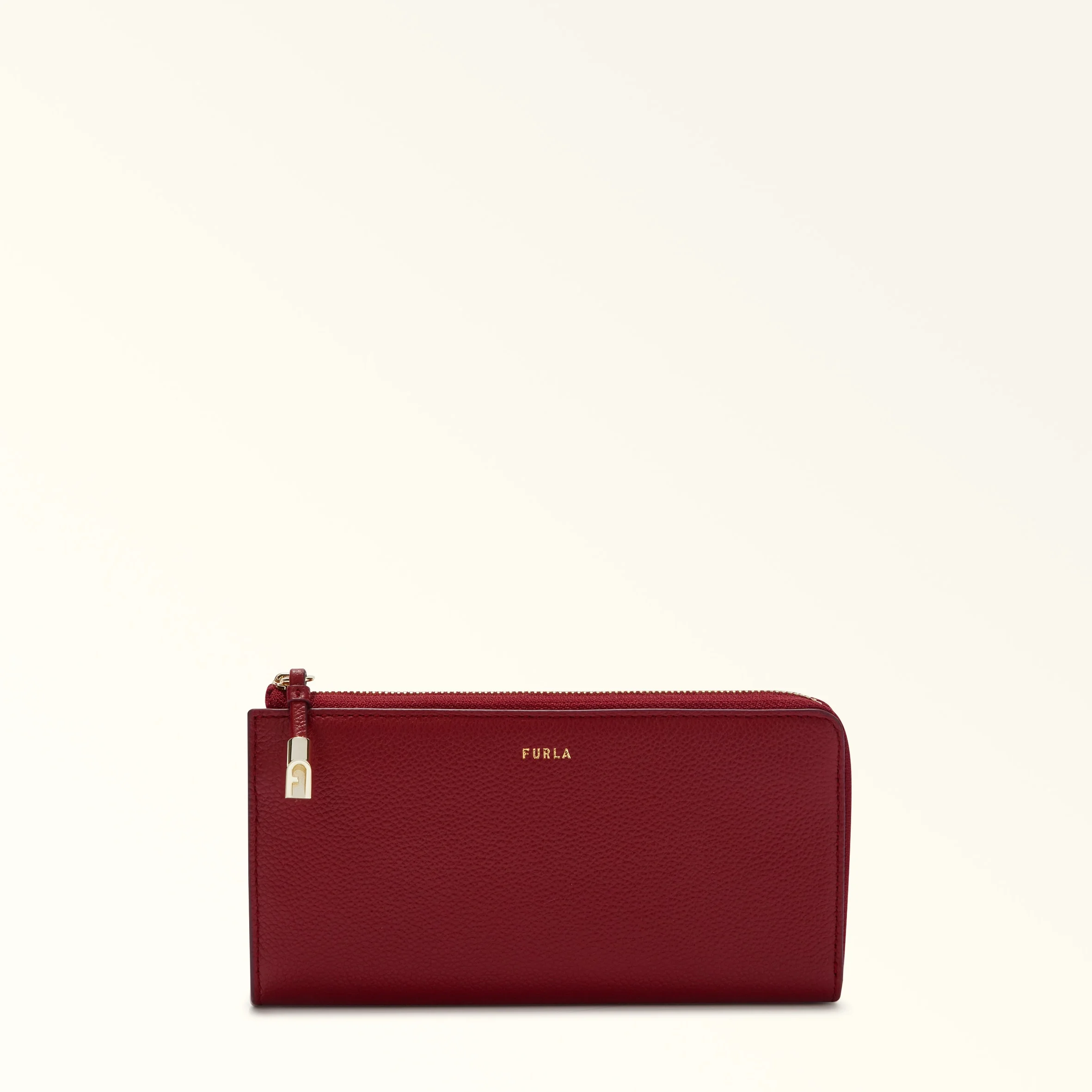 Details Exterior Details: Furla Punched Logo/Leather Zip Puller Material: Night Calf Leather Product Code: WP00471BX30361007CGQ00 Internal Composition: 100% Viscose External Composition: 100% Leather Plating: Gold Dimensions in INCH 7,48 x 3,94 x 0,98 (w x h x d)