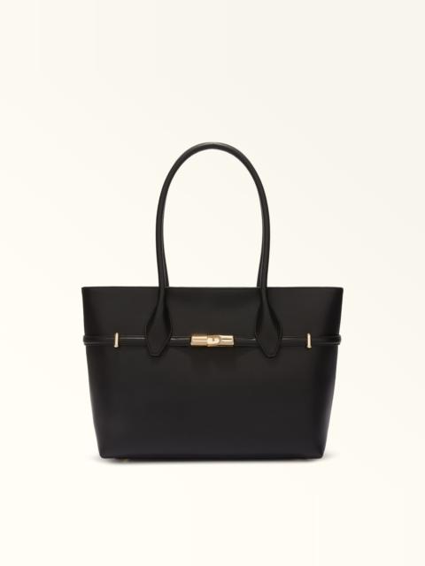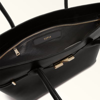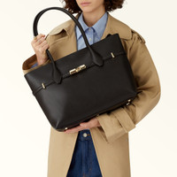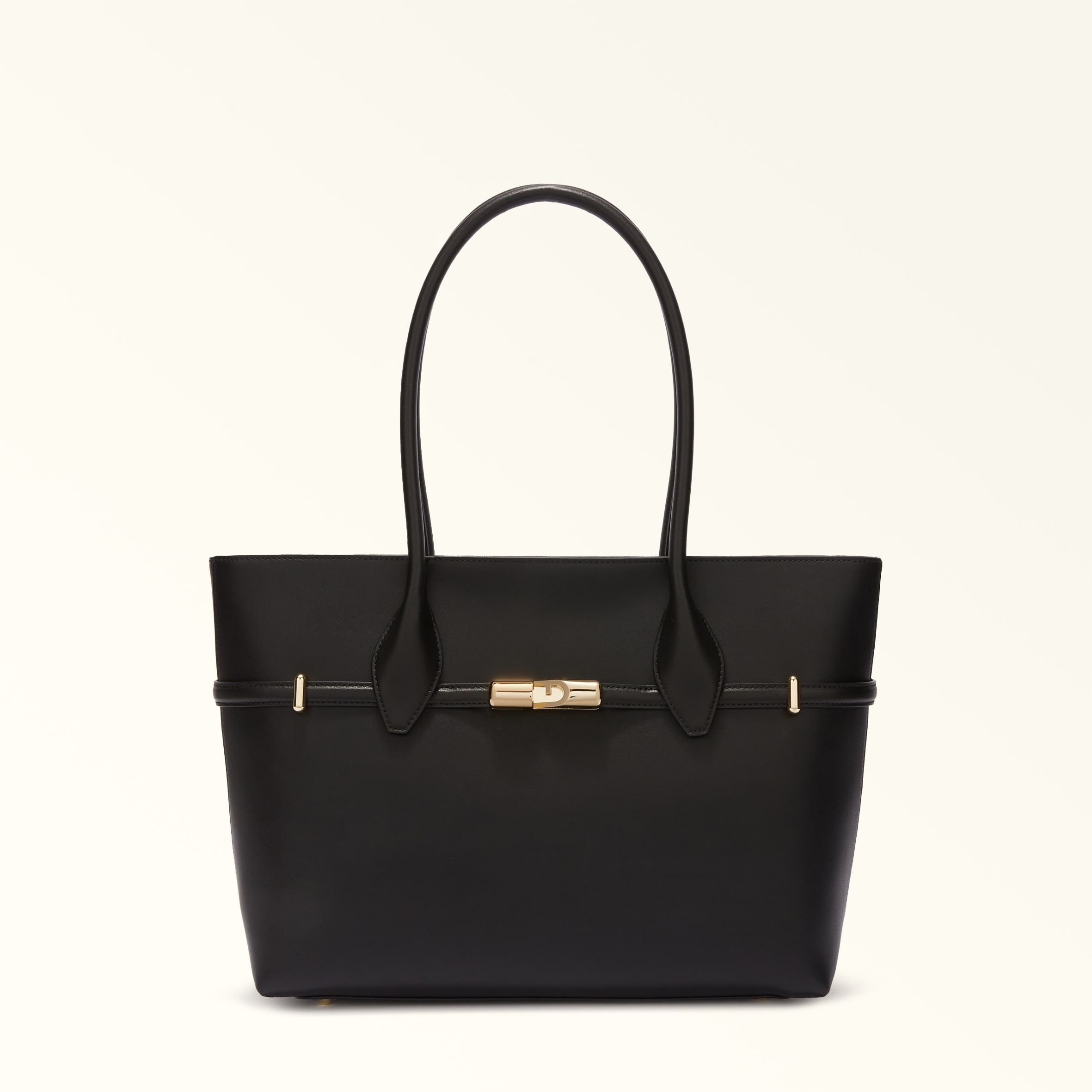 Sleek, structured and super-spacious, this large Furla Goccia tote comes in smooth leather for a clean and simple look. The elegant and contemporary piece is perfect for everyday use, being versatile and well-organised inside, and is embellished with straps adorned with the new Furla Arch logo magnetic hardware. - Two open inside pockets - Leather double handles - Metal feet Details Interior Details: 2 Flat Open Pocket/1 Zipped Pocket Exterior Details: Furla Punched Logo/Double Shoulder-Length Handles Material: Sidney Calf Leather Closure: Top Zipper Closure Product Code: WB01497BX31041007O6000 Internal Composition: 100% Polyester External Composition: 100% Leather Plating: Gold Dimensions in INCH 13,78 x 10,63 x 5,31 (w x h x d)