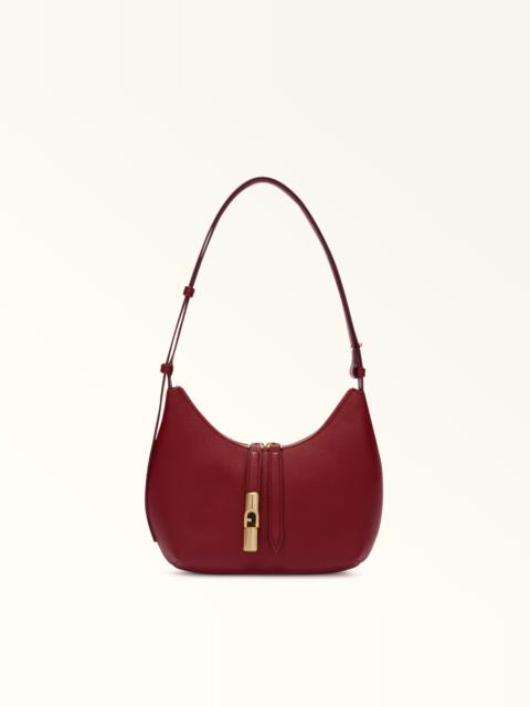 This Furla Goccia shoulder bag is styled in grained leather with contrasting details in smooth leather, and finished with a two-way zip embellished with the unusual cylindrical glossy-finish hardware with the Arch logo on one of the leather pullers. With sleek, curved lines, the rounded shape is compact yet spacious enough for your daily essentials. - Open inside pocket - Inside zip pocket - Adjustable smooth leather handle Details Exterior Details: Furla Punched Logo Material: Night Calf Leather + Sidney Calf Leather Strap information: Fixed/Adjustable Shoulder Strap Closure: Top Zipper Closure Product Code: WB01500BX335310074282S Internal Composition: 100% Polyester External Composition: 100% Leather Plating: Gold Dimensions in INCH 8,66 x 8,27 x 2,95 (w x h x d)