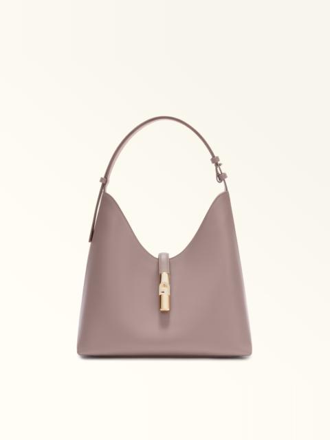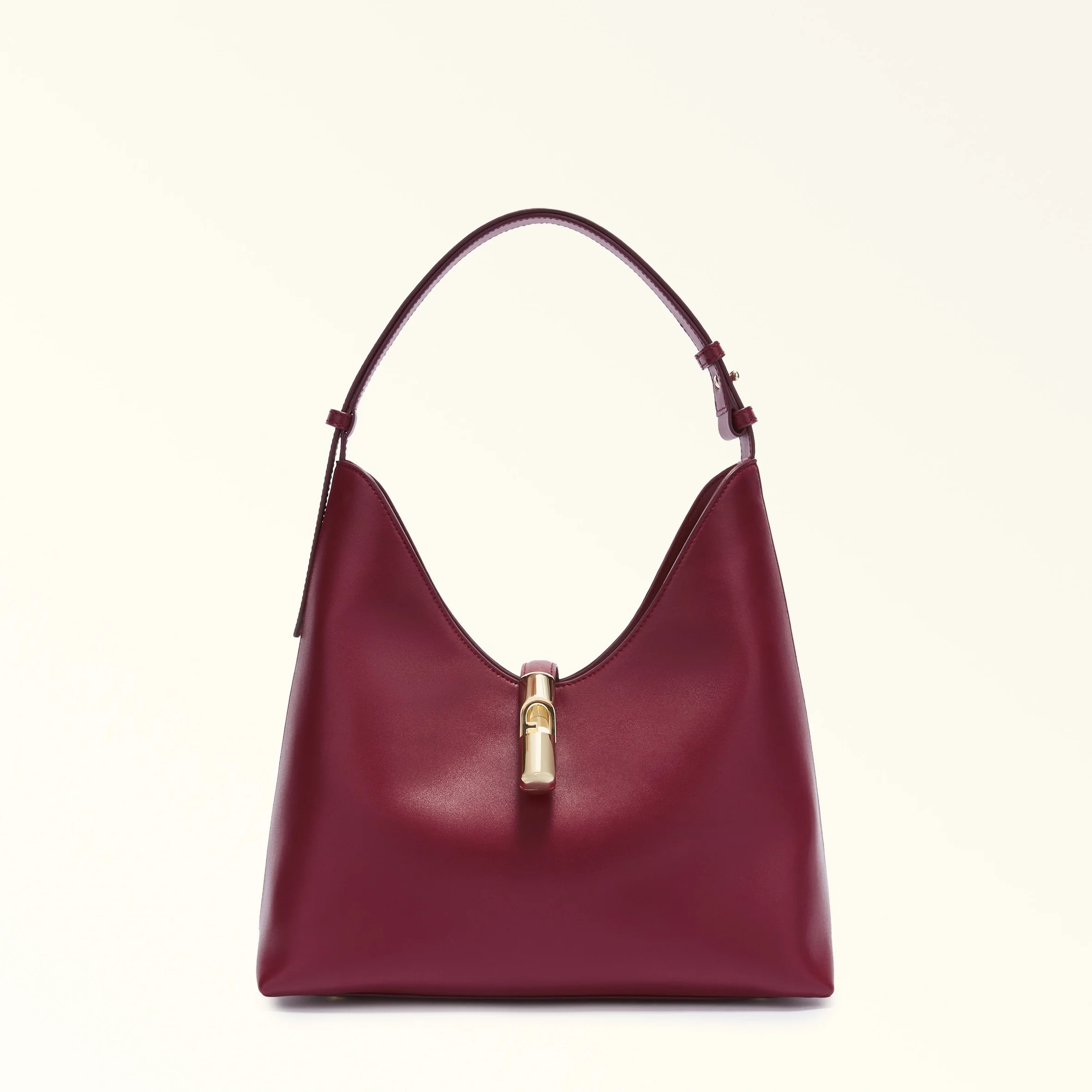 The soft silhouette and relaxed structure of this Furla Goccia hobo bag gives it a sleek and contemporary accent. Styled in silky smooth leather with a rich feel, it is roomy enough inside to hold all your essentials. The new cylindrical hardware reminiscent of a weight, decorated with the iconic Furla Arch logo, adds a distinctive finishing touch on the matching strap. - Open inside pocket - Inside zip pocket - Adjustable leather handle Interior Details 2 Flat Open Pockets/1 Zipped Pocket Exterior Details Furla Punched Logo/Single Handle Material Sidney Calf Leather Hardware Metal Feet Product Code WB01499BX31041007CGQ00 Internal Composition 100% Polyester External Composition 100% Leather Plating Gold Dimensions in INCH 11,81 x 12,01 x 6,3 (w x h x d)