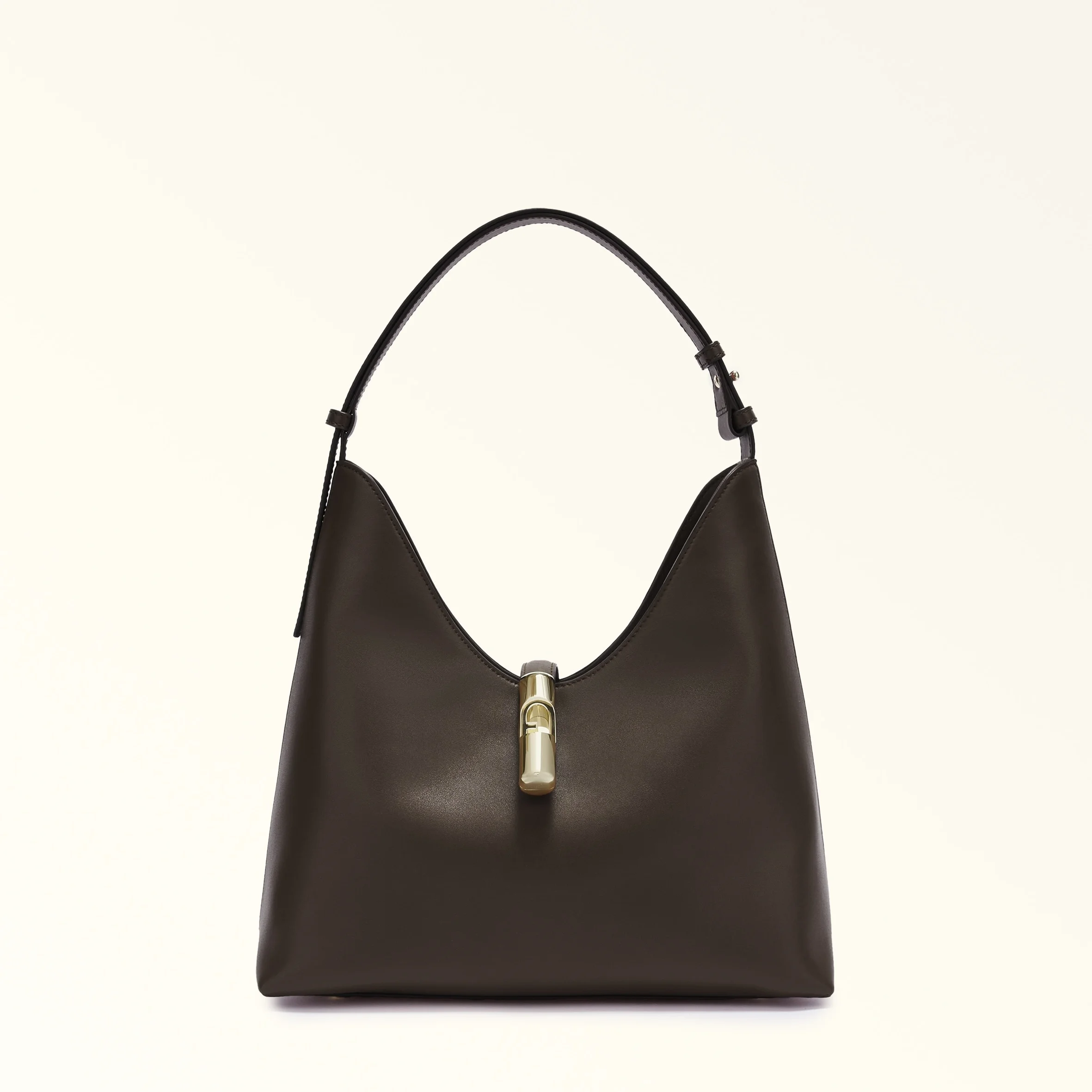 The soft silhouette and relaxed structure of this Furla Goccia hobo bag gives it a sleek and contemporary accent. Styled in silky smooth leather with a rich feel, it is roomy enough inside to hold all your essentials. The new cylindrical hardware reminiscent of a weight, decorated with the iconic Furla Arch logo, adds a distinctive finishing touch on the matching strap. - Open inside pocket - Inside zip pocket - Adjustable leather handle Interior Details 2 Flat Open Pockets/1 Zipped Pocket Exterior Details Furla Punched Logo/Single Handle Material Sidney Calf Leather Hardware Metal Feet Product Code WB01499BX310410072460S Internal Composition 100% Polyester External Composition 100% Leather Plating Gold Dimensions in INCH 11,81 x 12,01 x 6,3 (w x h x d)