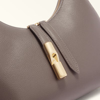 This Furla Goccia shoulder bag is styled in grained leather with contrasting details in smooth leather, and finished with a two-way zip embellished with the unusual cylindrical glossy-finish hardware with the Arch logo on one of the leather pullers. With sleek, curved lines, the rounded shape is compact yet spacious enough for your daily essentials. - Open inside pocket - Inside zip pocket - Adjustable smooth leather handle Details Exterior Details: Furla Punched Logo Material: Night Calf Leather + Sidney Calf Leather Strap information: Fixed/Adjustable Shoulder Strap Closure: Top Zipper Closure Product Code: WB01500BX335310074283S Internal Composition: 100% Polyester External Composition: 100% Leather Plating: Gold Weight: 0.57 kg Dimensions in INCH 8,66 x 8,27 x 2,95 (w x h x d)