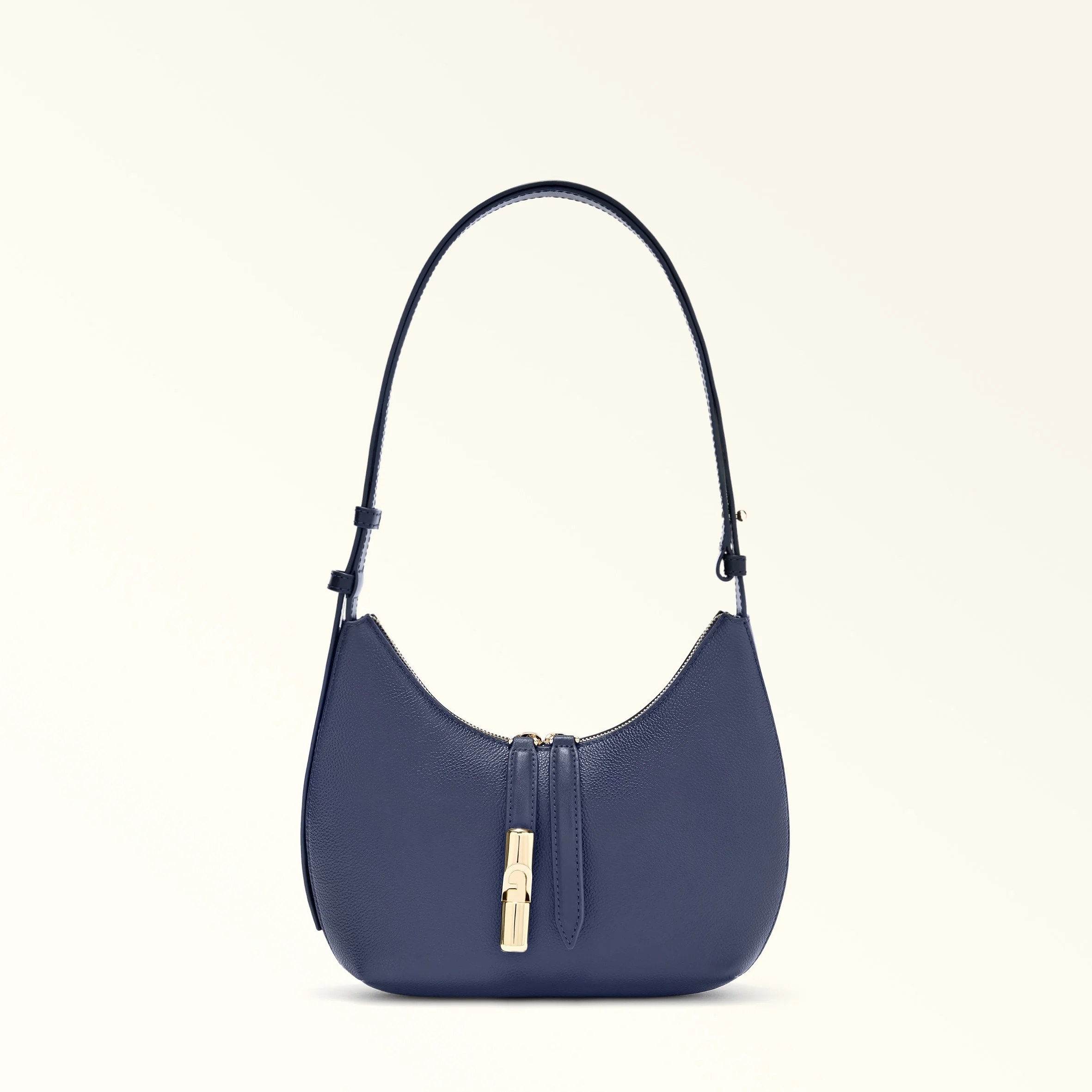 This Furla Goccia shoulder bag is styled in grained leather with contrasting details in smooth leather, and finished with a two-way zip embellished with the unusual cylindrical glossy-finish hardware with the Arch logo on one of the leather pullers. With sleek, curved lines, the rounded shape is compact yet spacious enough for your daily essentials. - Open inside pocket - Inside zip pocket - Adjustable smooth leather handle Details Exterior Details: Furla Punched Logo Material: Night Calf Leather + Sidney Calf Leather Strap information: Fixed/Adjustable Shoulder Strap Closure: Top Zipper Closure Product Code: WB01500BX335310074533S Internal Composition: 100% Polyester External Composition: 100% Leather Plating: Gold Dimensions in INCH 8,66 x 8,27 x 2,95 (w x h x d)