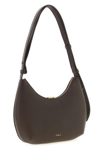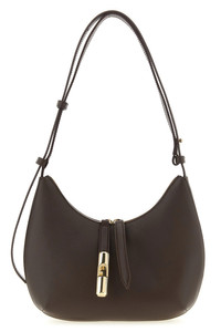 cod. WB01500BX33532460S Small 'Furla Goccia' shoulder bag in hammered and smooth leather, zip closure with cylindrical hardware in glossy finish with Arco logo on one of the two leather pullers, adjustable handle. Color: Brown Size & Fit: W 22 x H 21 x D 7.5 cm Composition: 100% calfskin leather (Bos Taurus) Made in: Cambodia