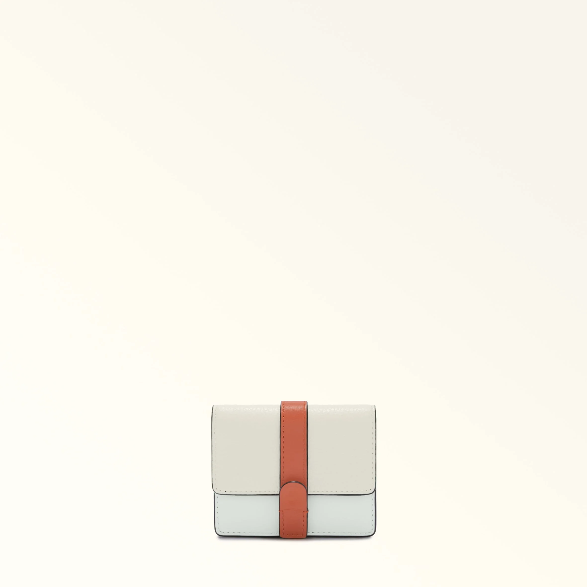 The Furla Grazia business card holder boasts a minimalist, compact design, crafted from a mixture of soft, smooth leather and grained leather—front flap—in different tones. It fastens with a tab sporting the iconic, brand-signature Arch logo hot-pressed on the front. Inside, it features a gusseted compartment and small slots for cards and ID. - Two inner slots for credit cards and ID - Slot under the flap - Open slot on the back - Press-stud fastening Details Material: Roma Soft Calf Leather Colorblock + Grained Calf Leather Product Code: WP00499BX158810073779S Internal Composition: 100% Viscose External Composition: 100% Leather Plating: Gold Weight: 0.14 kg Dimensions in INCH 4,33 x 3,54 x 0,79 (w x h x d)