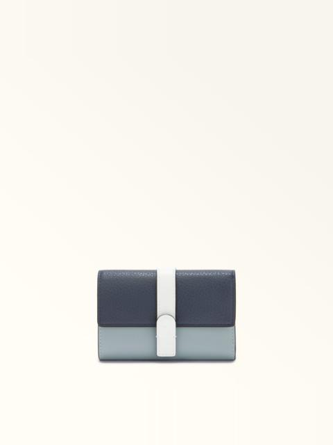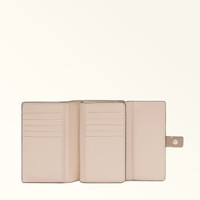 A compact, functional wallet that you can store in any bag. Furla Grazia stands out for its mixture of materials: smooth leather and contrasting grained details for a colour-block effect. The tri-fold design opens up like a book and features a spacious inner coin pocket with zip. - Fifteen inner credit card and ID slots - Inner compartment for banknotes - Flap and press-stud closure - Furla logo embossed on the front Details Material: Roma Soft Calf Leather Colorblock + Grained Calf Leather Hardware: Metal Zip Puller Product Code: WP00498BX158810073781S Internal Composition: 100% Viscose External Composition: 100% Leather Plating: Gold Dimensions in INCH 5,51 x 3,54 x 1,18 (w x h x d)