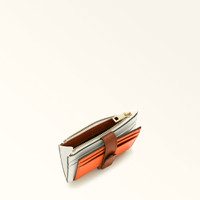 Versatile and compact enough to slip into any bag, the Furla Grazia wallet features a striking combination of materials; its smooth leather front is embellished with a contrasting grained leather detail for a colour-block effect. . - Two card slots on the front panel - Two card slots on the back panel - Inside pocket for a key card - Zip and press-stud closure - Arch logo embossed on the front Details Material: Roma Soft Calf Leather Colorblock + Grained Calf Leather Hardware: Metal Zip Puller Product Code: WP00548BX158810074056S Internal Composition: 60% Viscose 24% Polyester 16% Polyurethane External Composition: 100% Leather Plating: Gold Dimensions in INCH 4,72 x 3,15 x 0,59 (w x h x d)