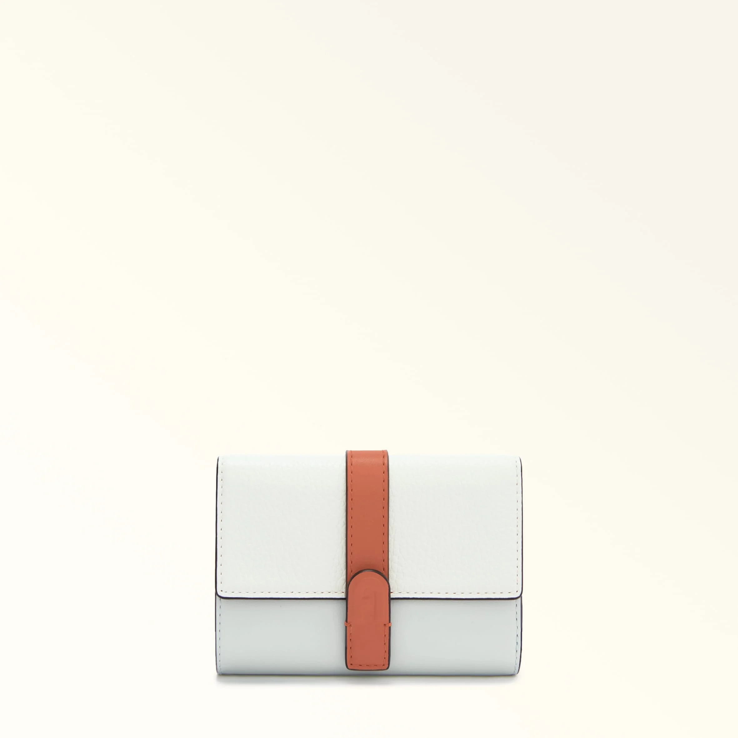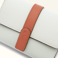 The Furla Grazia wallet combines fine craftsmanship and practicality. Made from a mixture of smooth leather and contrasting grained leather, it's finished with a press stud-fastened tab featuring the iconic Arch logo hot-pressed on the front. The inner construction with tri-fold opening is expertly designed to organise everything you need. - Eight inner credit card and ID slots - Inner compartment for banknotes - Zipped coin pocket at the side - Outer slip pocket on the back Details Interior Details: 8 Cc Slots 1 Banknotes Pocket 1 Zipped Pocket For Coins Material: Roma Soft Calf Leather Colorblock + Grained Calf Leather Hardware: Metal Zip Puller Product Code: WP00496BX158810073779S Internal Composition: 100% Viscose External Composition: 100% Leather Plating: Gold Dimensions in INCH 5,12 x 3,74 x 0,79 (w x h x d)