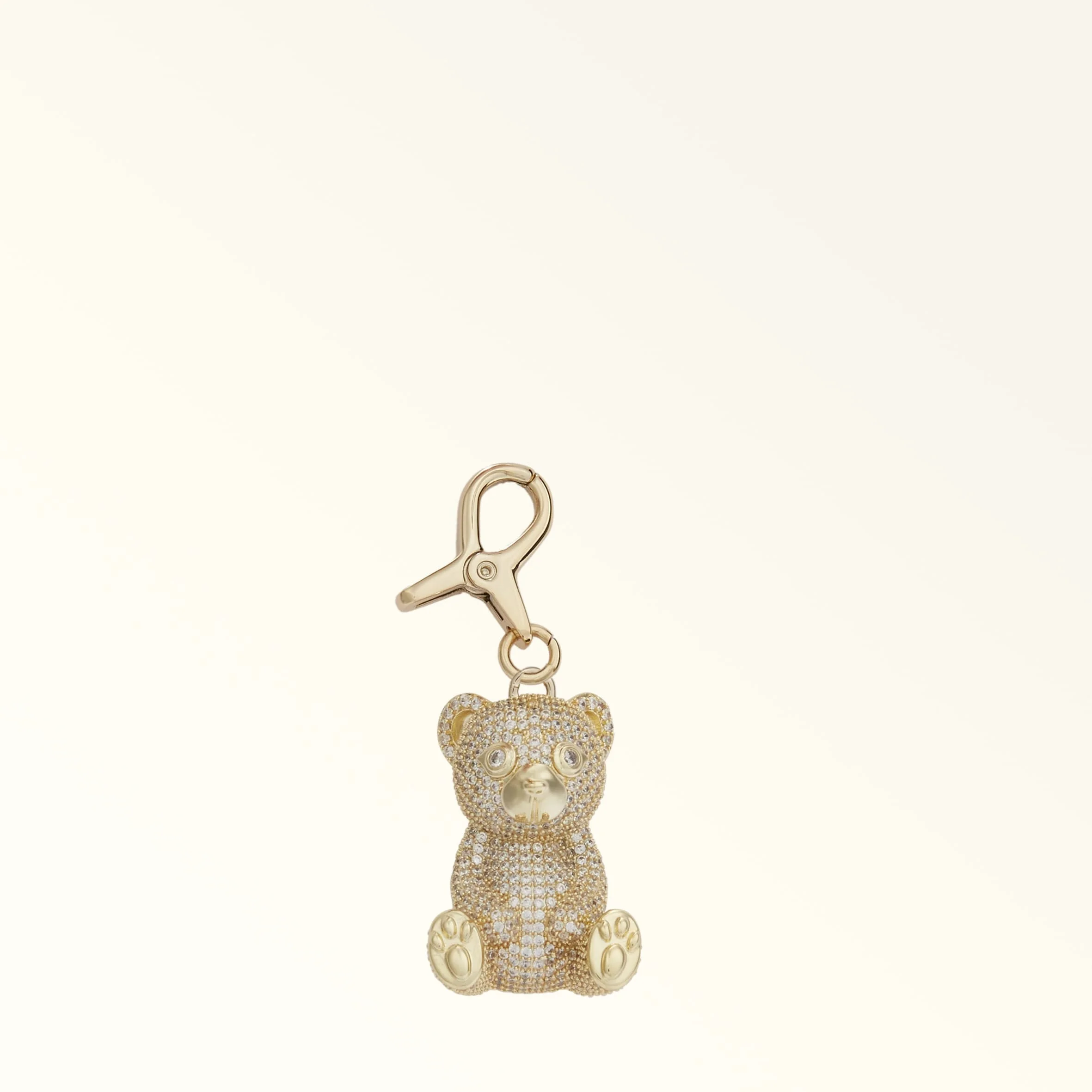 Featuring a small metal bear studded with radiant rhinestones, the Furla Hashtag charm makes a unique and eye-catching addition to your bags and accessories. - Metal snap hook - Engraved Furla logo Details Exterior Details: Furla Logo Engraved On The Metal Material: Metal + Strass Hardware: Snap Hook Product Code: WK00389K210001007CGD00 External Composition: 53% Brass 15% Metal 2% Metal Plating: Gold