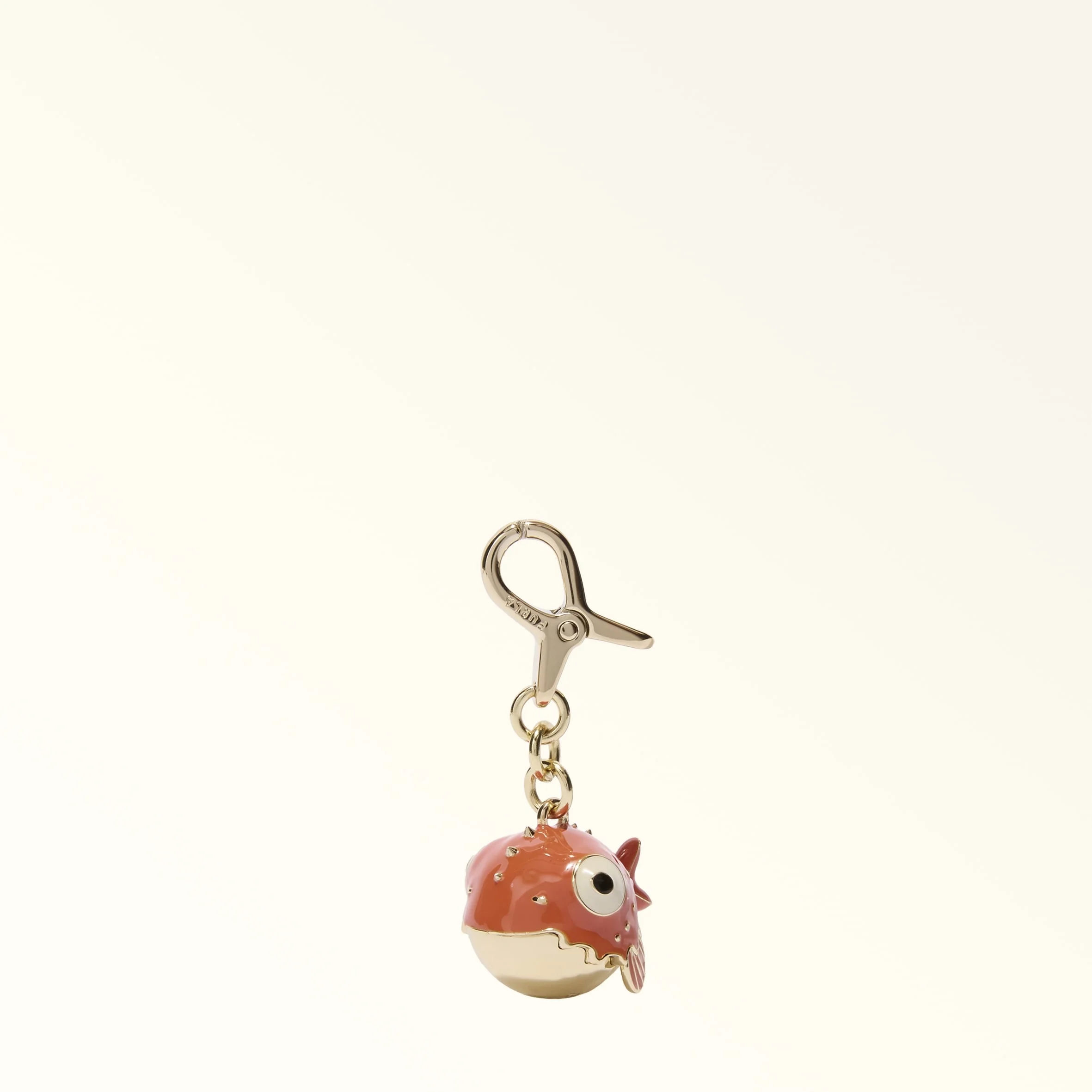 This Furla Hashtag bag charm features a small, three-dimensional-effect metal puffer fish with colourful enamelled details. This original creation in summery colours is perfect for personalising your accessories. - Metal snap hook with engraved Furla logo Details Exterior Details: Furla Logo Engraved On The Metal Material: Metal + Enamel Hardware: Snap Hook Product Code: WK00341MES00010073699S External Composition: 75% Metal 20% Resin 5% Brass Plating: Gold