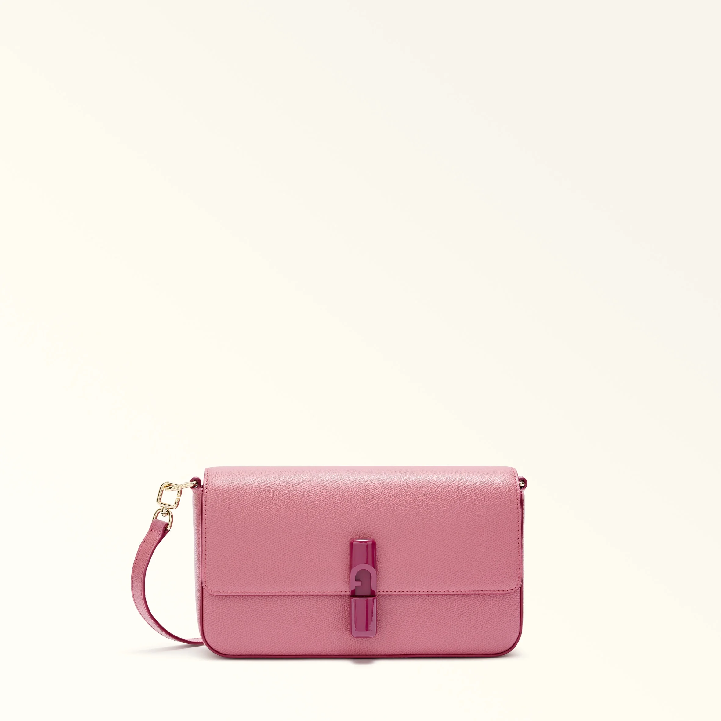 The shape of the Furla Iride crossbody is defined by its versatile, contemporary design. Its compact silhouette, in exquisite textured leather, features an adjustable and detachable shoulder strap for multiple styling options. Its magnetic closure is embellished with cylindrical metal hardware, finished with the iconic Furla Arch logo. - Inside zip pocket - Printed Furla logo Details Interior Details: 1 Zipped Pocket Exterior Details: Furla Punched Logo Material: Textured Leather Strap information: Removable/adjustable leather strap Strap Length Max: 46.46 in Strap Length Min: 41.34 in Product Code: WB01826ARE00090014147S Plating: Matching+Light Gold Dimensions in INCH 9,45 x 5,12 x 2,36 (w x h x d)
