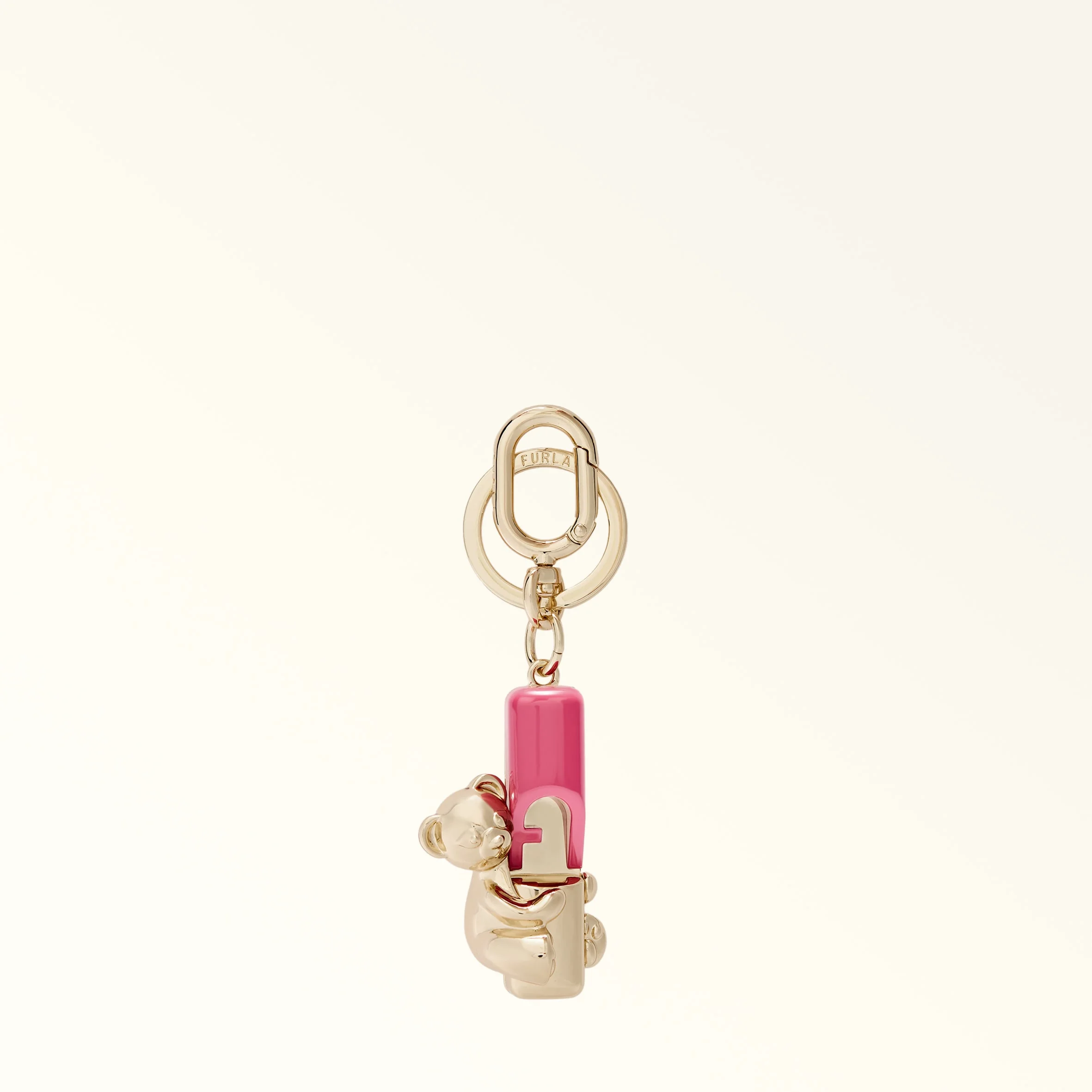 This sophisticated metal Furla Iride keyring features a teddy bear hugging a cylindrical element, engraved with the iconic Arch logo. A unique accessory for your bag or keys. - Snap hook and brise ring with engraved Furla logo Details Exterior Details: Furla Logo Engraved On The Metal Material: Metal Hardware: Snap Hook/Brisee Ring Product Code: WR00866MT000010074528S Plating: Gold Weight: 0.1 kg Dimensions in INCH 1,18 x 4,53 x 0,91 (w x h x d)