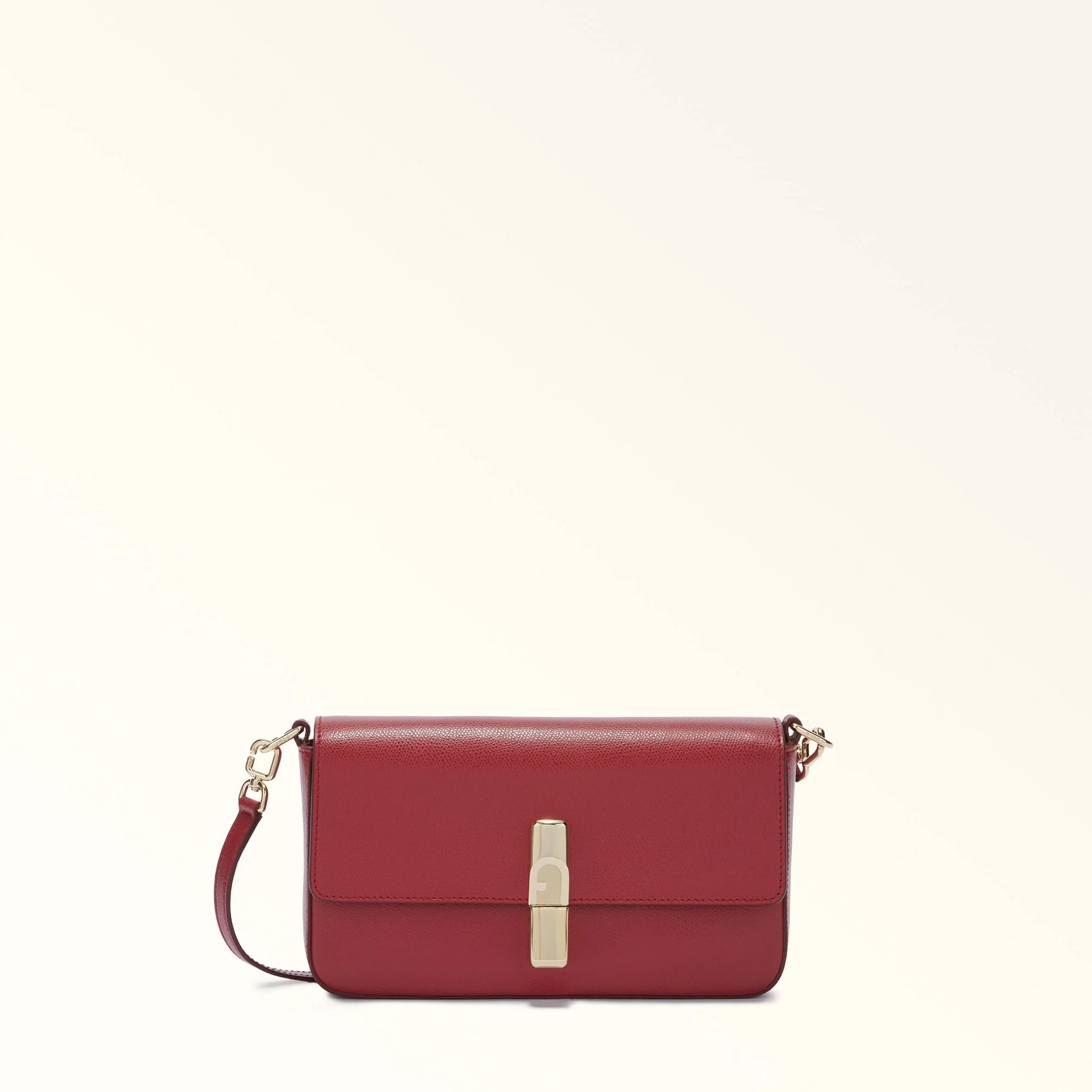 The shape of the Furla Iride crossbody is defined by its versatile, contemporary design. Its compact silhouette, in exquisite textured leather, features an adjustable and detachable shoulder strap for multiple styling options. Its magnetic closure is embellished with cylindrical metal hardware, finished with the iconic Furla Arch logo. - Inside zip pocket - Printed Furla logo Details Interior Details: 1 Zipped Pocket Exterior Details: Furla Punched Logo Material: Textured Leather Strap information: Removable/adjustable leather strap Strap Length Max: 46.46 in Strap Length Min: 41.34 in Product Code: WB01826ARE0001007CGQ00 Plating: Gold Dimensions in INCH 9,45 x 5,12 x 2,36 (w x h x d)
