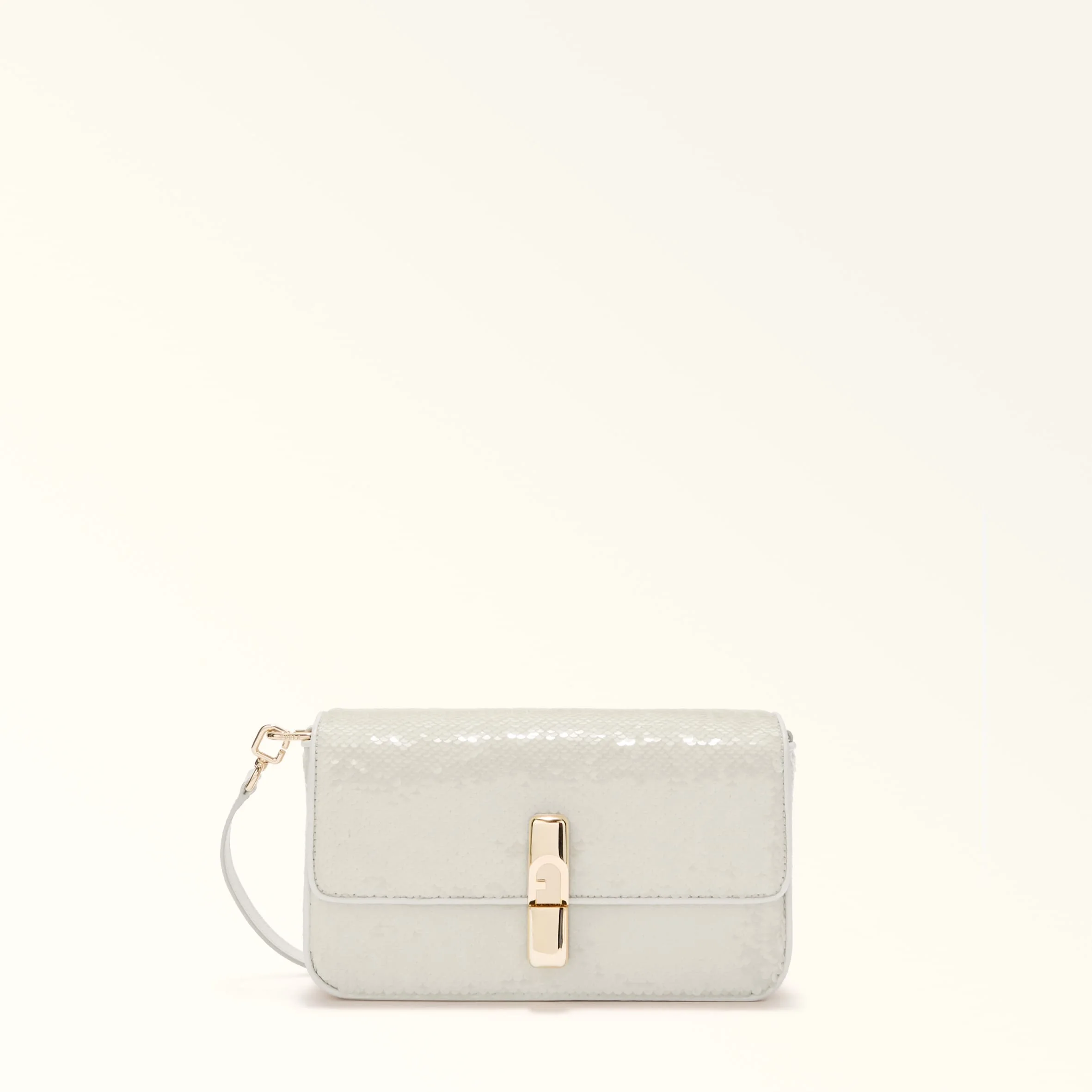 Versatile, contemporary, compact: the Furla Iride crossbody is made of a fabric covered in elegant sparkling sequins and features a matching adjustable, detachable shoulder strap for multiple styling options. Its magnetic closure is embellished with cylindrical metal hardware, finished with the iconic Furla Arch logo. - Inside zip pocket - Printed Furla logo Details Interior Details: 1 Zipped Pocket Material: Paillettes Fabric Strap information: Removable/adjustable leather strap Strap Length Max: 46.46 in Strap Length Min: 41.34 in Product Code: WB01950BX13771007PNN00 Plating: Gold Dimensions in INCH 9,45 x 5,12 x 2,36 (w x h x d)