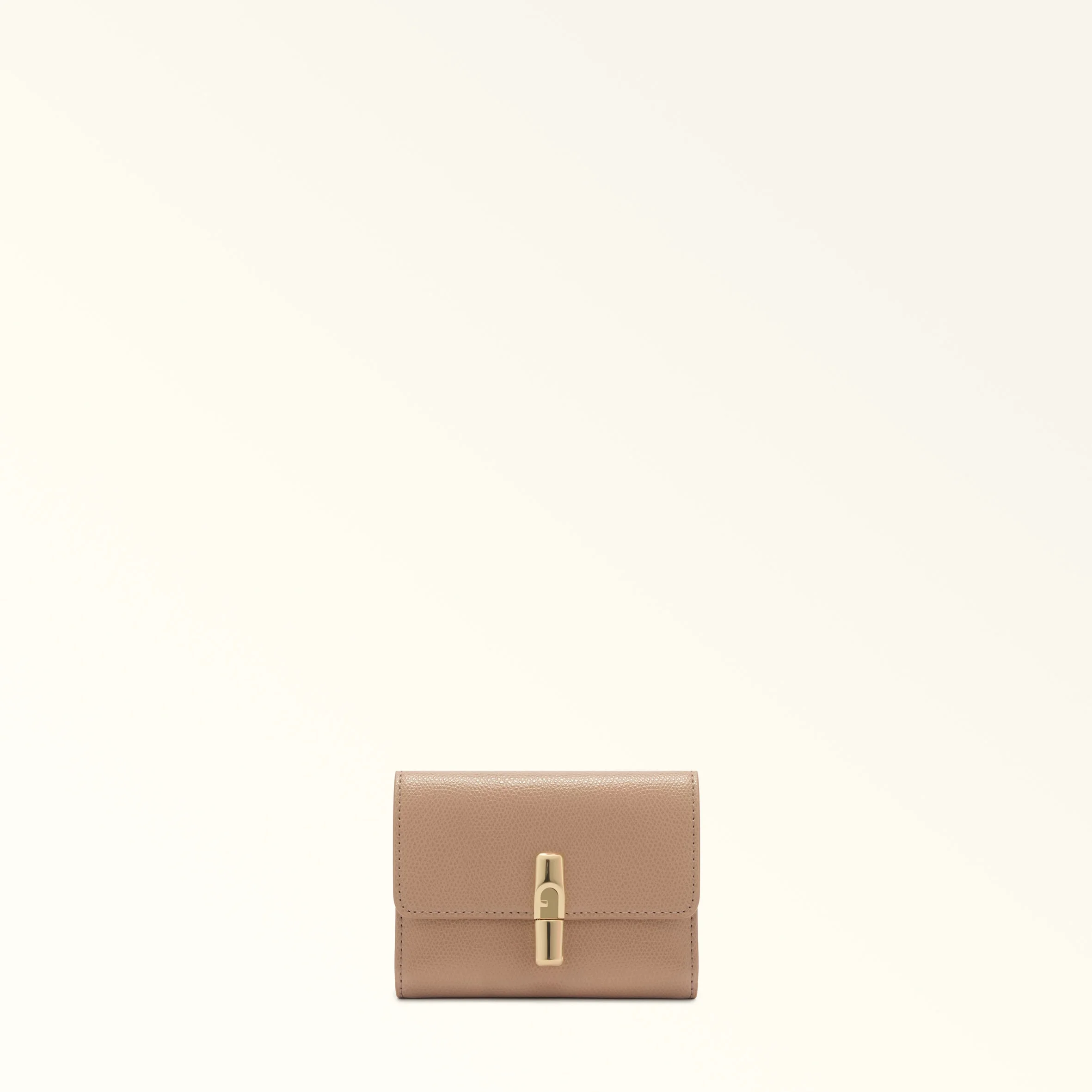 Crafted from fine printed leather with a grained finish, the compact Furla Iride wallet is the perfect size for slipping into your bag. Inside, it boasts a variety of pockets and compartments for keeping your cards and cash flawlessly organised. - Eight inner credit card slots - Four inner side pockets - Inner banknote compartment - Inside coin pocket with zip closure - Magnetic button closure - Furla and Arch logos punched on the front Details Interior Details: 8 Cc Slots 1 Banknotes Pocket 1 Zipped Pocket For Coins Material: Textured Leather Product Code: WP00564ARE00010074563S Plating: Gold Dimensions in INCH 4,72 x 3,54 x 0,79 (w x h x d)