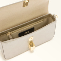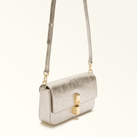 Versatile, contemporary, compact: the Furla Iride crossbody is crafted from luxe metallic leather with a printed texture and features an adjustable, detachable shoulder strap for multiple styling options. Its magnetic closure is embellished with cylindrical metal hardware, finished with the iconic Furla Arch logo. - Inside zip pocket - Printed Furla logo Details Interior Details: 1 Zipped Pocket Exterior Details: Furla Punched Logo Material: Piuma Metal Calf Leather Strap information: Removable/adjustable leather strap Strap Length Max: 46.46 in Strap Length Min: 41.34 in Product Code: WB01826BX41501007VAN00 Plating: Gold Dimensions in INCH 9,45 x 5,12 x 2,36 (w x h x d)