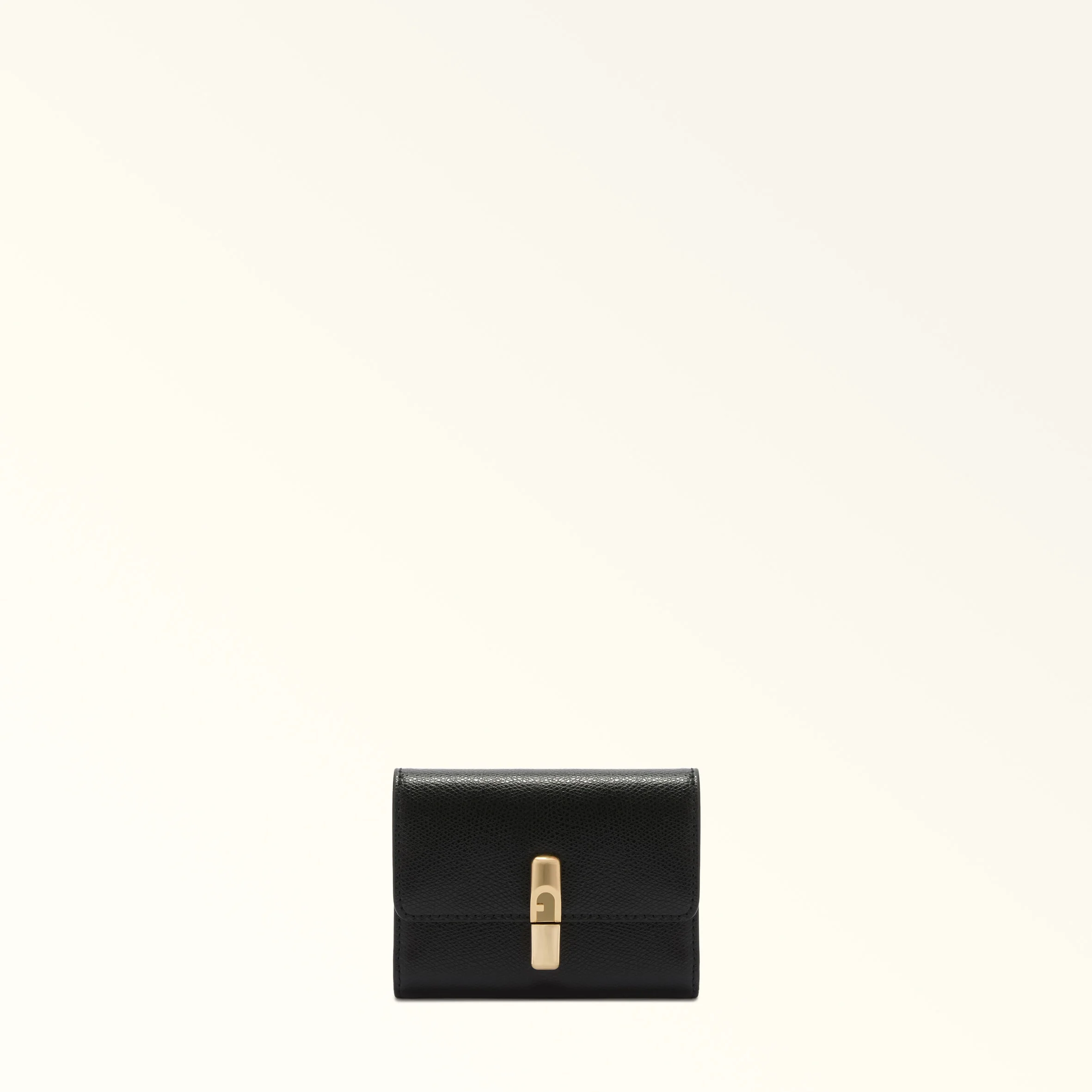 Crafted from fine printed leather with a grained finish, the compact Furla Iride wallet is the perfect size for slipping into your bag. Inside, it boasts a variety of pockets and compartments for keeping your cards and cash flawlessly organised. - Eight inner credit card slots - Four inner side pockets - Inner banknote compartment - Inside coin pocket with zip closure - Magnetic button closure - Furla and Arch logos punched on the front Details Interior Details: 8 Cc Slots 1 Banknotes Pocket 1 Zipped Pocket For Coins Material: Textured Leather Product Code: WP00564ARE0001007O6000 Plating: Gold Dimensions in INCH 4,72 x 3,54 x 0,79 (w x h x d)
