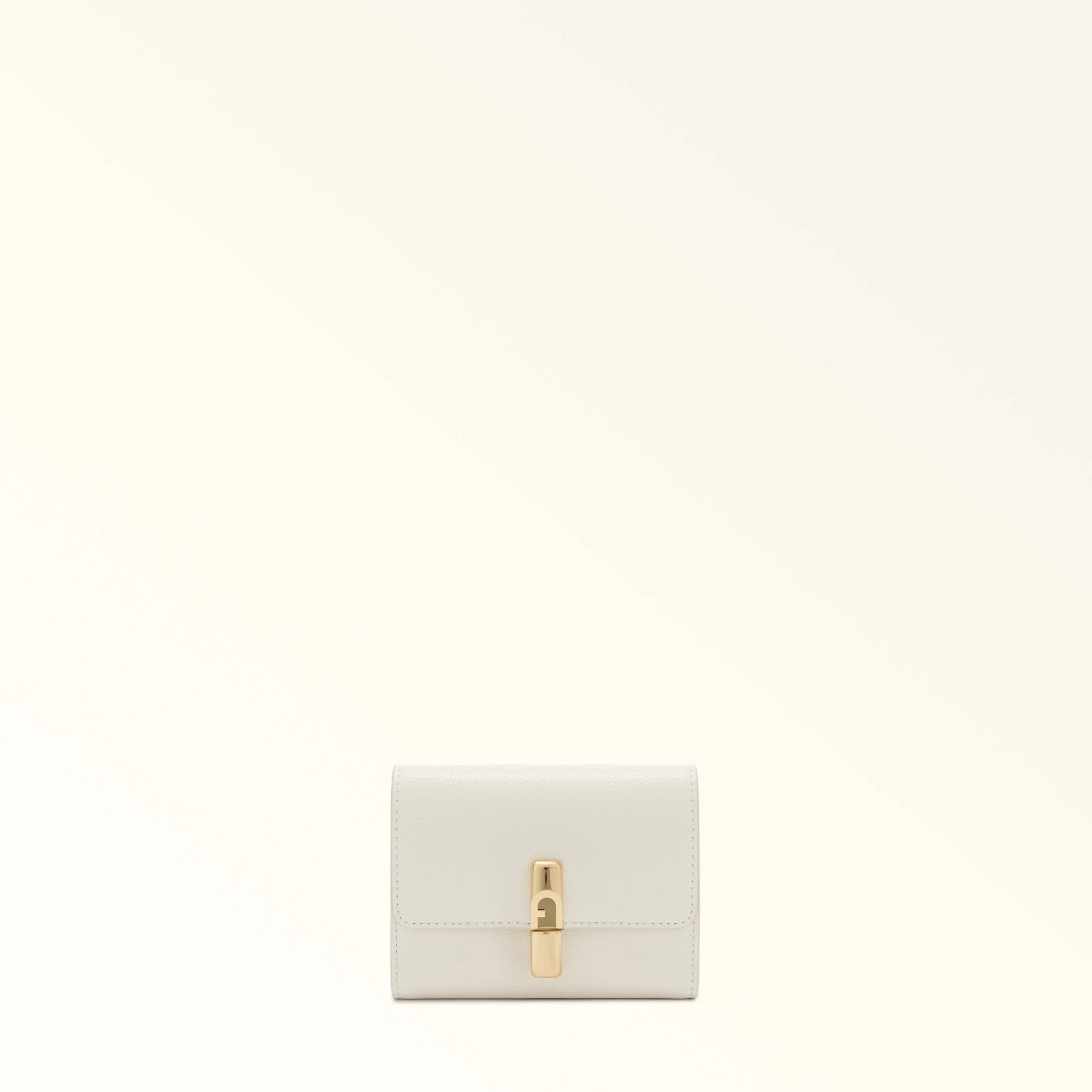 Crafted from fine printed leather with a grained finish, the compact Furla Iride wallet is the perfect size for slipping into your bag. Inside, it boasts a variety of pockets and compartments for keeping your cards and cash flawlessly organised. - Eight inner credit card slots - Four inner side pockets - Inner banknote compartment - Inside coin pocket with zip closure - Magnetic button closure - Furla and Arch logos punched on the front Details Interior Details: 8 Cc Slots 1 Banknotes Pocket 1 Zipped Pocket For Coins Material: Textured Leather Product Code: WP00564ARE0001007PNN00 Plating: Gold Dimensions in INCH 4,72 x 3,54 x 0,79 (w x h x d)