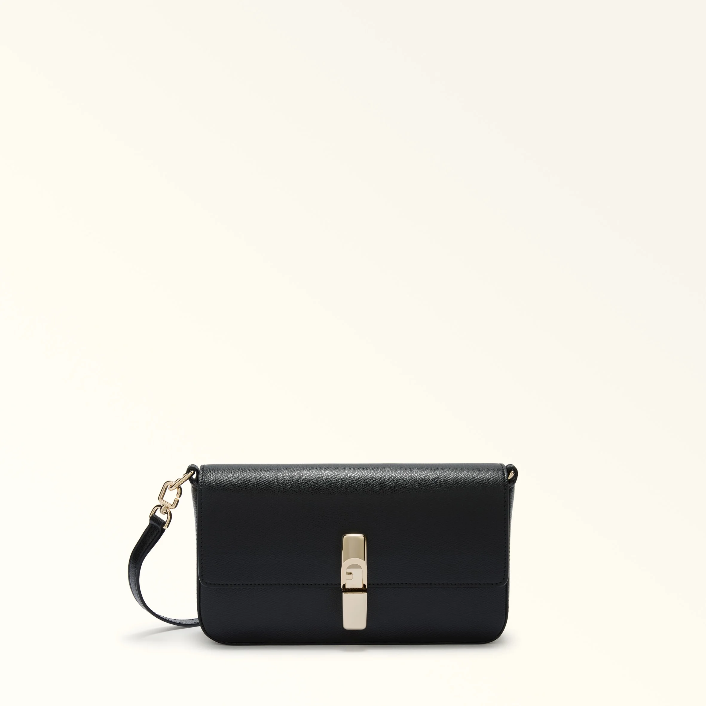 The shape of the Furla Iride crossbody is defined by its versatile, contemporary design. Its compact silhouette, in exquisite textured leather, features an adjustable and detachable shoulder strap for multiple styling options. Its magnetic closure is embellished with cylindrical metal hardware, finished with the iconic Furla Arch logo. - Inside zip pocket - Printed Furla logo Details Interior Details: 1 Zipped Pocket Exterior Details: Furla Punched Logo Material: Textured Leather Strap information: Removable/adjustable leather strap Strap Length Max: 46.46 in Strap Length Min: 41.34 in Product Code: WB01826ARE0001007O6000 Plating: Gold Dimensions in INCH 9,45 x 5,12 x 2,36 (w x h x d)