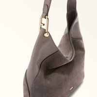 The Furla Lara hobo bag is the perfect accessory for work and play. Crafted from an elegant blend of suede and smooth calfskin leather, it is embellished on the shoulder strap with the iconic Arcosfera logo in metal and has all the space you need for your personal belongings. Details Material: Suede + Grained Calf Leather Closure: Magnet Closure Hardware: Arch+Furla Lettering Product Code: WB01900BX189510074285S Plating: Gold Dimensions in INCH 11,42 x 9,84 x 4,33 (w x h x d)