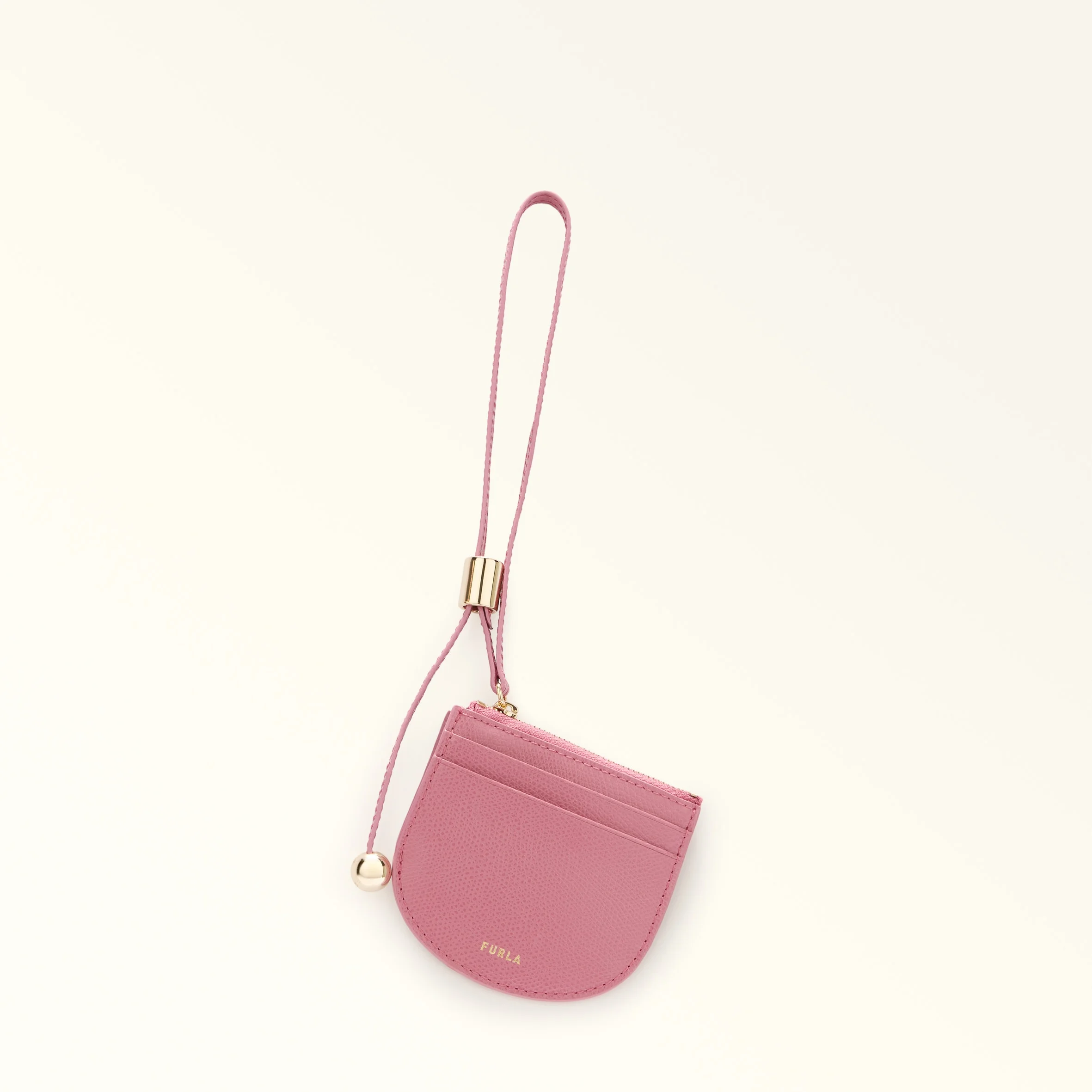 The Furla Laura card holder is made of leather with a subtle printed texture. It is compact enough to slip into any bag, but features several inner compartments for your cash, coins and receipts. Its long strap sits comfortably in your hand or around your wrist, and a zip closure with leather pull embellishes its rounded silhouette. - Two credit card slots on the front and back - Metal Sfera embellishment on leather zip puller - Furla logo embossed on the front Details Material: Textured Leather Product Code: WP00512ARE00010074147S Internal Composition: 60% Viscose 40% Leather External Composition: 100% Leather Plating: Gold Dimensions in INCH 3,94 x 3,94 x 0,2 (w x h x d)