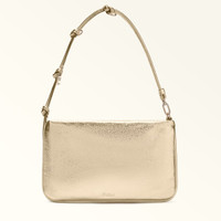 An elegant clutch with radiant chic, this Furla Lily in fine leather features a printed texture and matching metallic piping. Its flat rectangular design is perfect for holding all your essentials. The shoulder strap can be detached from one side, meaning you can wear the accessory on your shoulder or around your waist; decorative metal eyelets leave room for personalisation with pendants and charms. - Three inner card slots - Furla logo charm - Punched Furla logo - Zip fastening Details Interior Details: 3 Cc Slots Exterior Details: Furla Punched Logo Material: Piuma Metal Calf Leather + Piping Metal Product Code: WE00828BX43041007VAN00 Plating: Gold Dimensions in INCH 9,84 x 5,51 x 0,79 (w x h x d)
