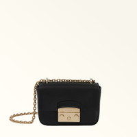 This Furla Metropolis mini crossbody is an iconic piece suitable for any occasion. Crafted from soft leather, it enjoys a structured design, with just enough space inside to keep your belongings secure. The glossy finish and snap button closure add a distinctive touch, and it can be worn on the shoulder, or carried as a clutch into the evening. - Open inside pocket - Furla logo engraved on the closure Interior Details 1 Flat Open Pocket Exterior Details Fixed Flap material Soft Calf Leather Strap information Fixed/Adjustable Chain Strap Strap Length Max 44.49 in Strap Length Min 24.8 in Closure Metropolis Lock Hardware Metal Ring On Top Of The Flap For Chain product code WB00828_AX0733_1007_O6000 Lining 100% Polyester composition 100% Leather Plating Gold