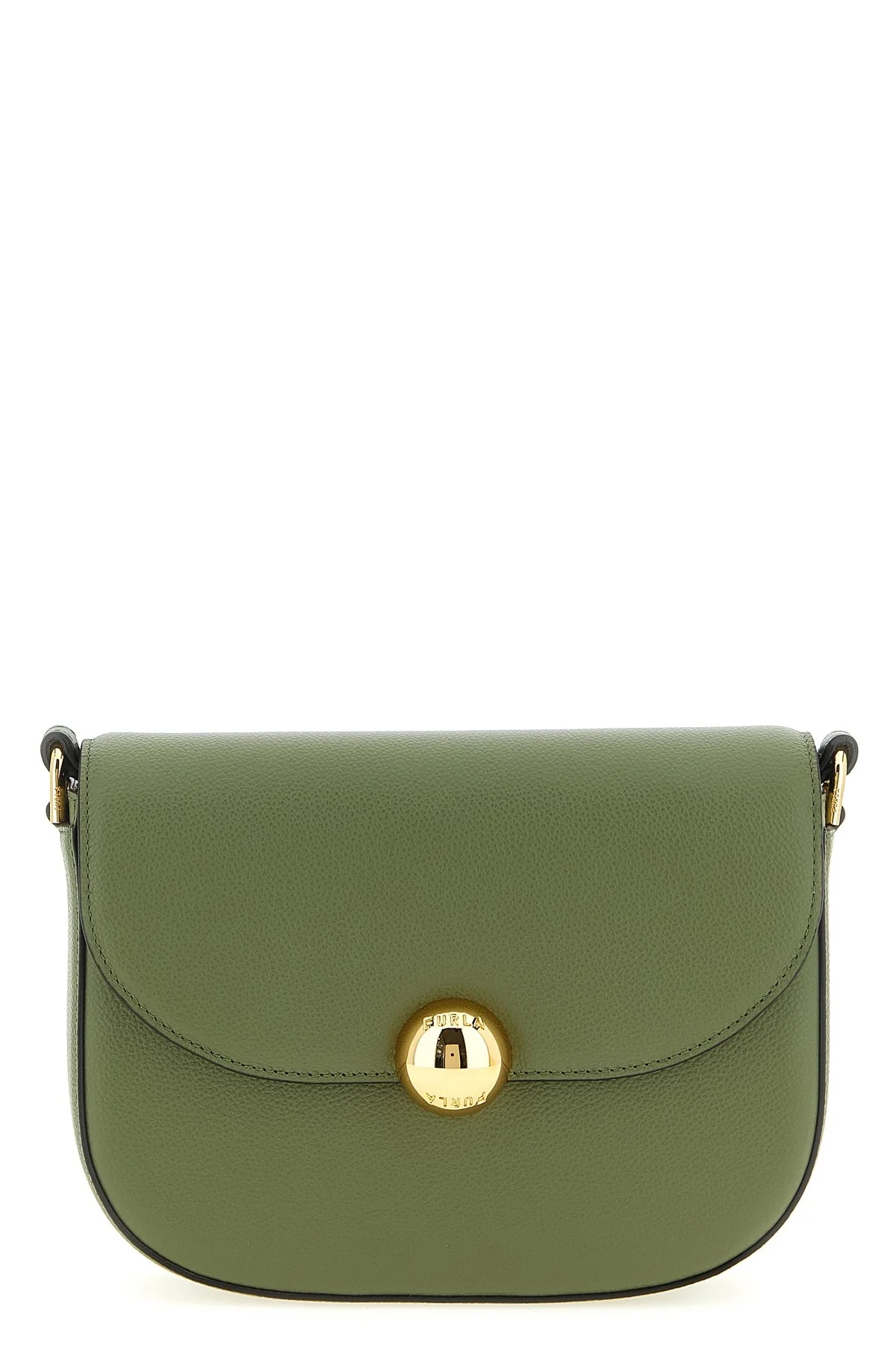 cod. WB01887BX30364555S Small fine leather 'Furla Moonlight' crossbody bag with a light hammered finish, magnetic flap closure with iconic metal 'Sfera' logo on the front, embossed logo on the back, and adjustable shoulder strap. Color: Green Size & Fit: W 20 x H 15 x D 5.5 cm Composition: 100% calfskin leather (Bos Taurus) Made in: China