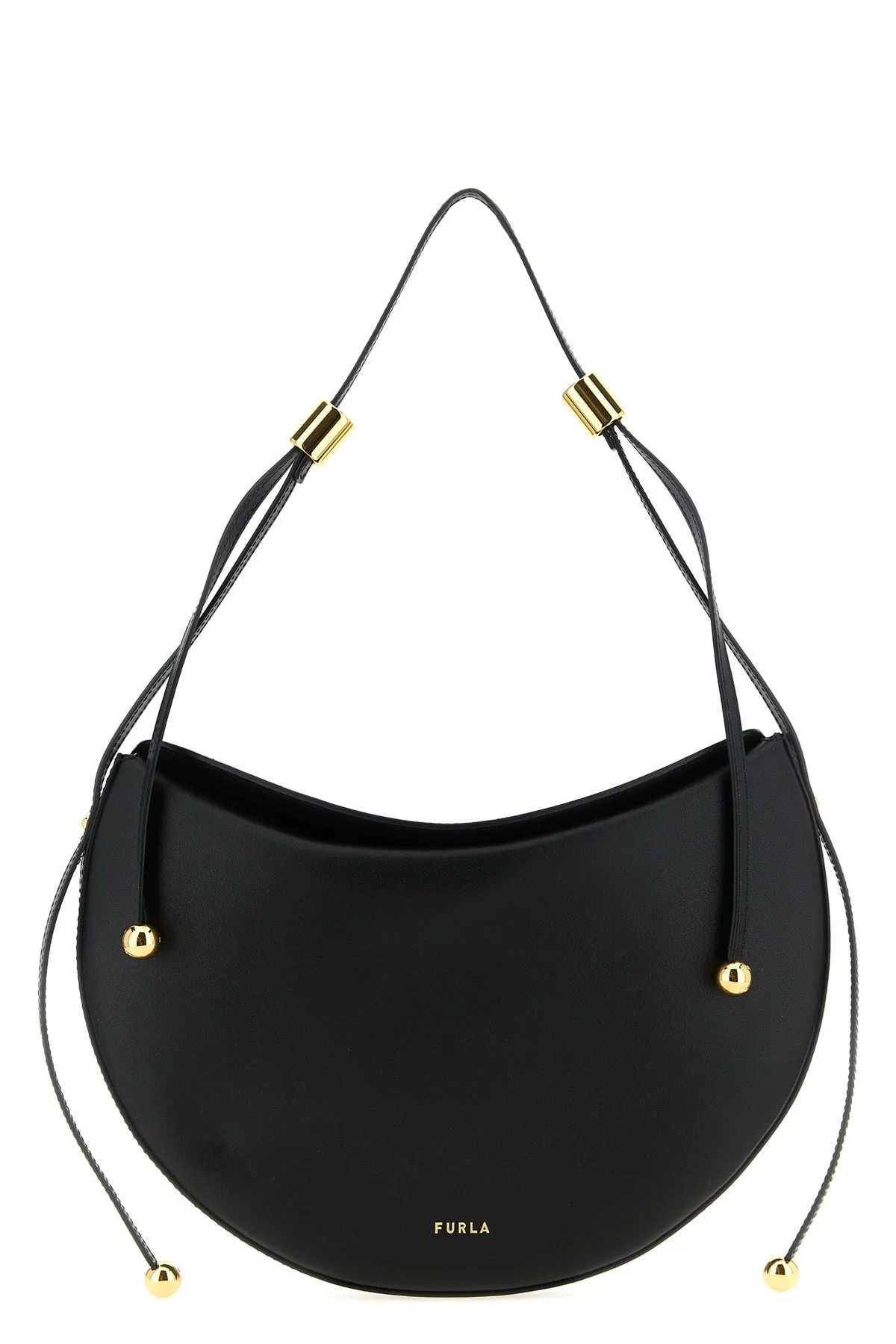 cod. WB01868BX3104O6000 Small 'Furla Moonstone' shoulder bag in calf leather, front embossed logo, top magnetic folded closure, adjustable shoulder strap with cylindrical hardware and the two ball elements. Color: Black Size & Fit: W 30 x H 20 x D 2 cm Composition: 100% calfskin leather (Bos Taurus) Made in: China